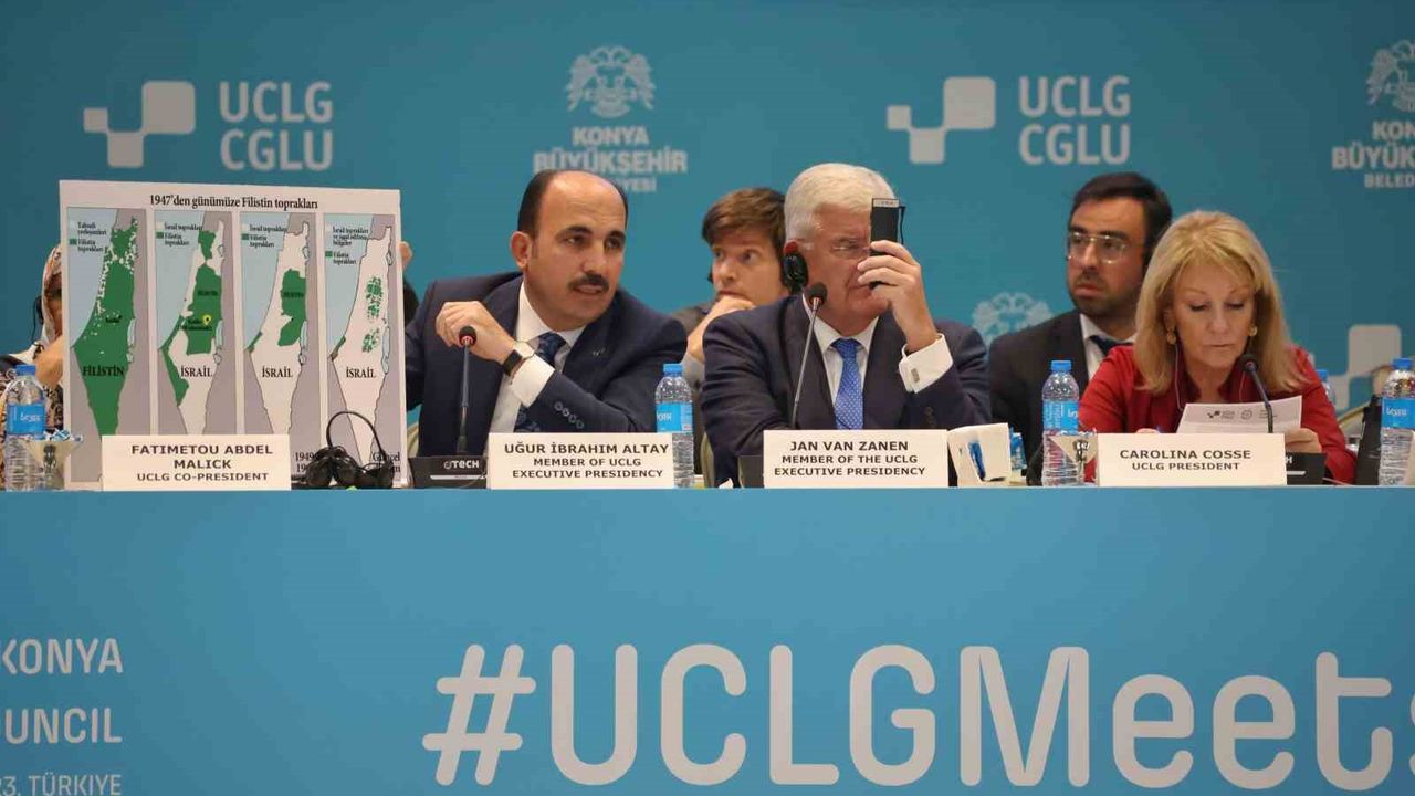 Konya Büyükşehir Belediyesi’nin ev sahipliğinde Selçuklu Kongre Merkezi’nde devam eden UCLG Dünya Konseyi kapsamında Ana Tüzük Toplantısı’nda İsrail’in Filistin’e yönelik gerçekleştirdiği katliamlar hakkında konuşan Başkan Altay, konuşmasının başında BM Genel Sekreteri Antonio Guterres’in açıklamasından örnek verdi.
