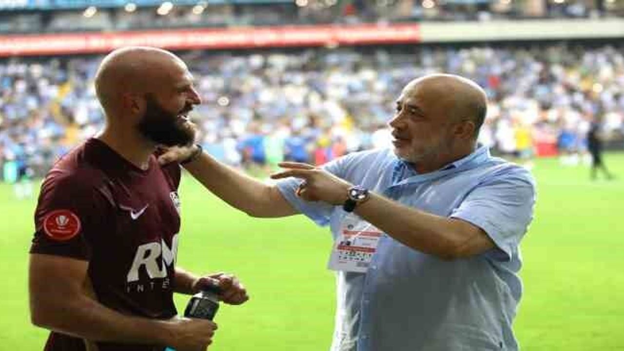 Y. Adana Demirspor Başkanı Murat Sancak, galip geldikleri CFR Cluj maçı sonrası, Arlind Ajeti ile özel olarak ilgilendi.
