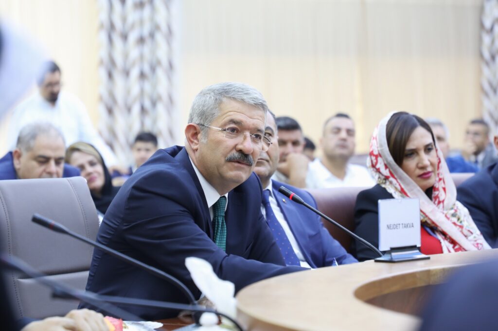 İran ve Irak’a yapılan seyahatler ile ilgili bilgiler veren Başkan Takva son olarak şunları söyledi:” 10 yıllık görev süremiz içerisinde 50’den fazla kez Tahran başta olmak üzere İran İslam Cumhuriyeti’nin birçok kentine seyahat düzenledik. Kentimizin tanıtımı ve İran İslam Cumhuriyeti kentleriyle, odalarıyla işbirliğini geliştirmeye yönelik çabalar içerisinde olduk. Köyümüze gitmediğimiz kadar İran İslam Cumhuriyeti’ne geldik. Son 2 yılda da 5 kez Erbil’e, 3 kez Duhok’a ve Süleymaniye’ye gidip Irak’ta kendi şehrimizi, bölgemizi tanıtmanın çabası içerisinde olduk. Azerbaycan’a seyahatimiz oldu. Aynı şekilde işbirlikleri ve tanıtımlar yaptık. Aynı şekilde sizleri de şehrimize ve ülkemize davet ediyor, en kısa sürede bekliyoruz. Odamızda İran İslam Cumhuriyeti tüccarları için tahsis ettiğimiz bir ofis var. Önümüzdeki günlerde de Kürdistan Bölgesi için bir ofis tahsis edeceğiz. Kısa zamanda gelip ofislerinize sahip çıkmanızı ve orada faaliyet yürütmenizi bekliyoruz. O ofislerde de ülkelerinizi temsil eden her türlü görsel mevcuttur. O yüzden kendinizi kendi evinizde hissedeceksiniz.”