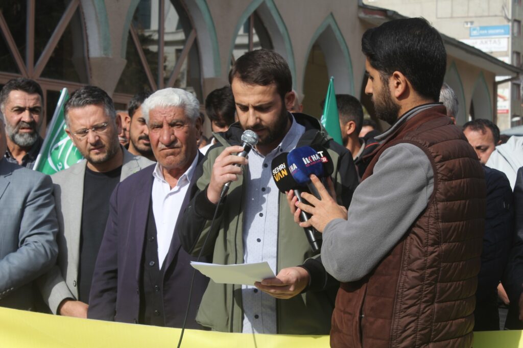 Yaşanan soykırımı lanetlemek ve sesiz kalmamak adına Cuma namazından sonra Hazreti Ömer Camii avlusunda bir araya gelen HÜDA PAR Van İl Teşkilatı ve cami cemaati, israil terör çetesine tepki göstererek bütün insanlığı tepki göstermeye davet etti.