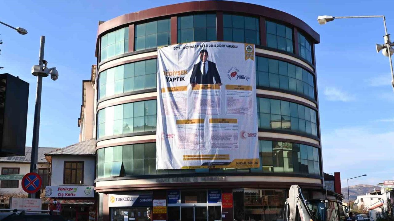 Malatya’nın Pütürge ilçesinde Başkan Mikail Sülük, seçim öncesi 5 yıllık gelir-giderleri dev bir afişle ilçe meydanında halka duyurdu.