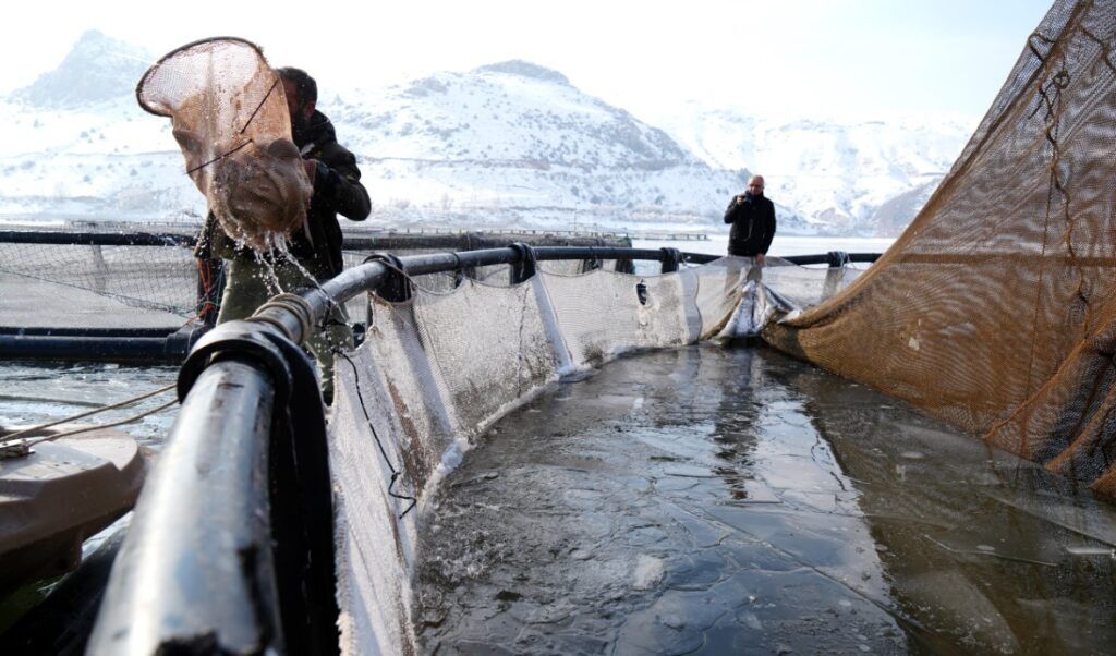 Balıkçılardan Şükrü Adam buz tutan gölde kafeslerden balık hasadını oldukça zor şartlar altında yapabildiklerini ifade ederek, “Bu sene aşırı soğuk var. Göl tamamen buz tuttu, balık kafeslerimiz de buz altına kaldı. Buzları kırarak tekneyle kafeslere varıp balıkları ağlarla çıkarıyoruz. Antarktika değil Erzincan burası. Buradan çıkardığımız balıkları Erzincan, Elazığ, Trabzon'a gönderiyoruz. Erzincan'da deniz yok ama iyi balık çıkarıyoruz” dedi.