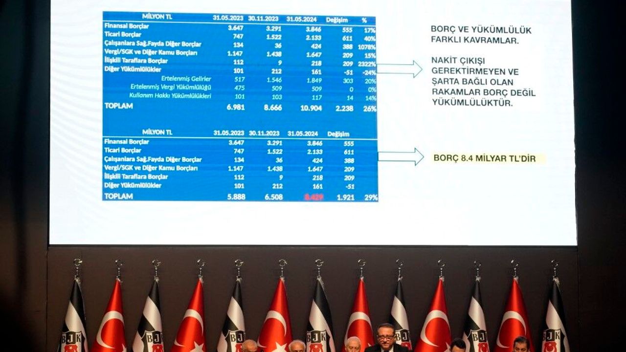 Beşiktaş Kulübü’nün Olağan İdari ve Mali Genel Kurul Toplantısı, İstanbul Kongre Merkezi Harbiye Oditoryumu’nda devam ediyor. Beşiktaş Kulübü Genel Sekreteri Kaan Şakul, divan üyelerine mali konularda bilgi verdi. Şakul, siyah-beyazlı kulübün borcunun 31 Mayıs 2024 itibariyle 8 milyar 429 milyon TL olduğunu açıkladı.