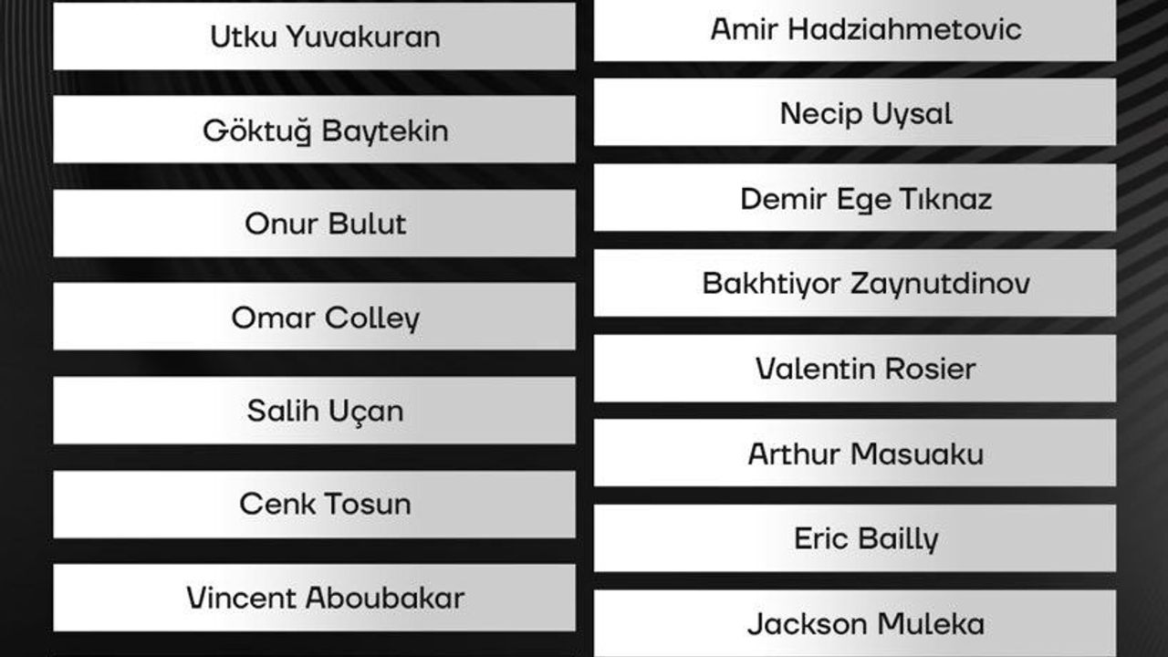 "Ersin Destanoğlu, Utku Yuvakuran, Göktuğ Baytekin, Onur Bulut, Omar Colley, Salih Uçan, Cenk Tosun, Vincent Aboubakar, Milot Rashica, Daniel Amartey, Alex Oxlade-Chamberlain, Rachid Ghezzal, Amir Hadziahmetovic, Necip Uysal, Demir Ege Tıknaz, Bakhtiyor Zaynutdinov, Valentin Rosier, Arthur Masuaku, Eric Bailly, Jackson Muleka, Jean Onana, Umut Meraş ve Semih Kılıçsoy."