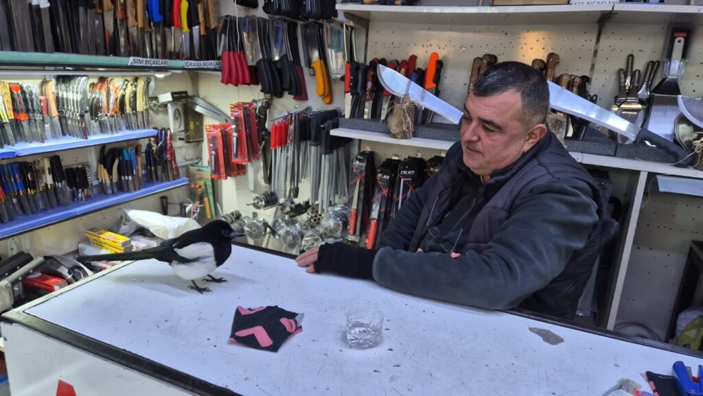 Tekirdağ’ın Süleymanpaşa ilçesine bağlı Ertuğrul Mahallesi’ndeki bedesten esnafından Murat Bıçakçı, dükkanına sığınan bir saksağan kuşuyla sıra dışı bir dostluk kurdu. Doğası gereği evcil olmayan saksağanın insanlarla bu kadar yakın ilişki kurması görenleri hem şaşırttı hem de mutlu etti.