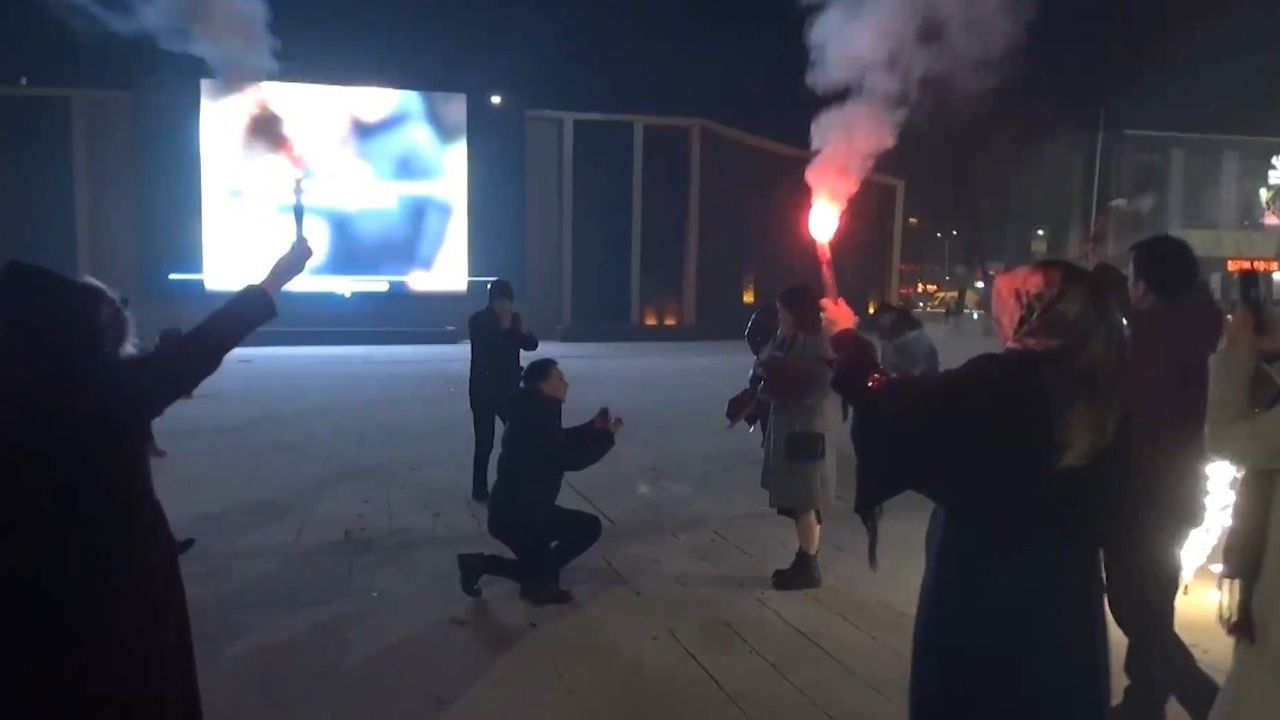Erzincan’da arkadaşı ile Dörtyol mevkiinde fotoğraf çekilen genç kadın sürpriz evlilik teklifi alınca göz yaşlarına hakim olamadı.