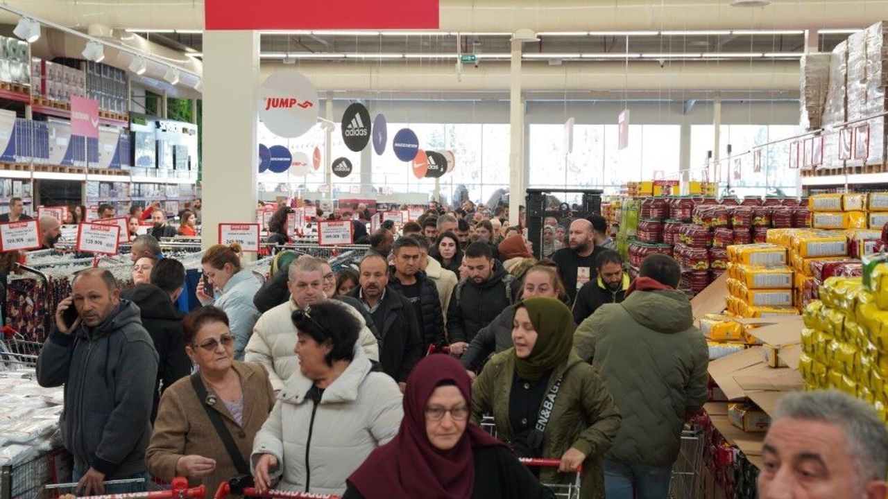 Mimar Sinan Mahallesinde bir market zincirine ait şubenin açılışına özel yüzde kırk indirim ve bin kişiye bin TL hediye alışveriş çeki kampanyasını duyan vatandaşlar gece gelip marketin önünde çadır kurdular. Sabahın erken saatlerinde marketin önünde uzun sıralar oluşturan vatandaşlar, uzun bekleyiş sonrasında bin TL’lik Hediye alışveriş çekini aldıktan sonra markete akın etti. Açılış ile birlikte markete giren vatandaşlar yaşanan yoğunluk nedeniyle alışveriş yapmakta zorlandı. Çoğunlukla gıda ve mutfak ürünlerini tercih eden vatandaşlar, kasap reyonlarını adeta yağmaladı. Yaşanan yoğunluk kameralara yansırken, onlarca metre uzayan alışveriş sırası dron ile havadan görüntülendi.