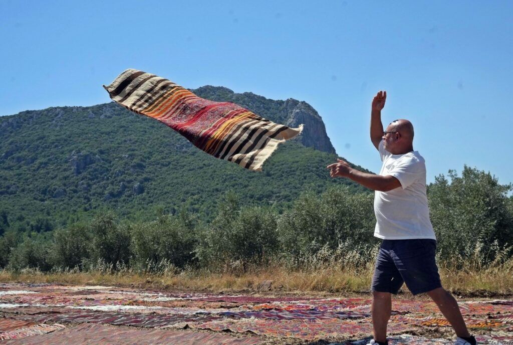 “Sıcağın etkisiyle yabancı maddeler yumuşuyor. Sabah yağan çiğ halıyı yumuşatıyor ve tekrar öğle saatlerindeki sıcaklıkla o çiğ buharlaşarak mikropları temizliyor.