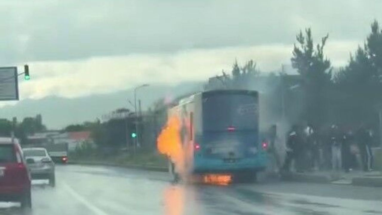 Erzurum’da hareket halindeki belediye otobüsü bir anda alev aldı, yolcular panikle kendilerini dışarı attı.