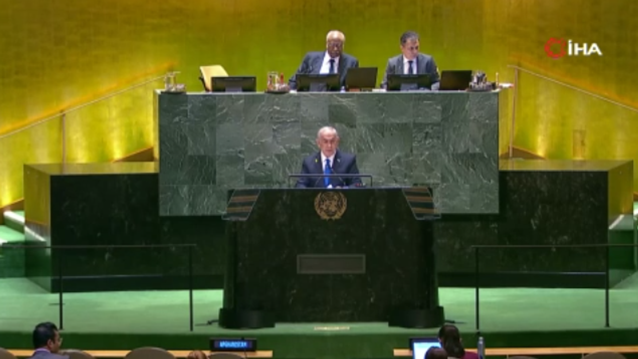 Gazze Şeridi'nde soykırımını yaklaşık 1 yıldır sürdüren İsrail'in Başbakanı Binyamin Netanyahu, Birleşmiş Milletler (BM) 79. Genel Kurulu'nda tepkiyle karşılandı. Netanyahu kurula hitap etmek üzere kürsüye çıktığı sırada başta Türk heyeti olmak üzere çok sayıda ülke temsilcisi, İsrail başbakanını protesto etmek amacıyla salonu terk etti. Netanyahu konuşmasını çoğu boş olan sandalyeler önünde gerçekleştirdi.