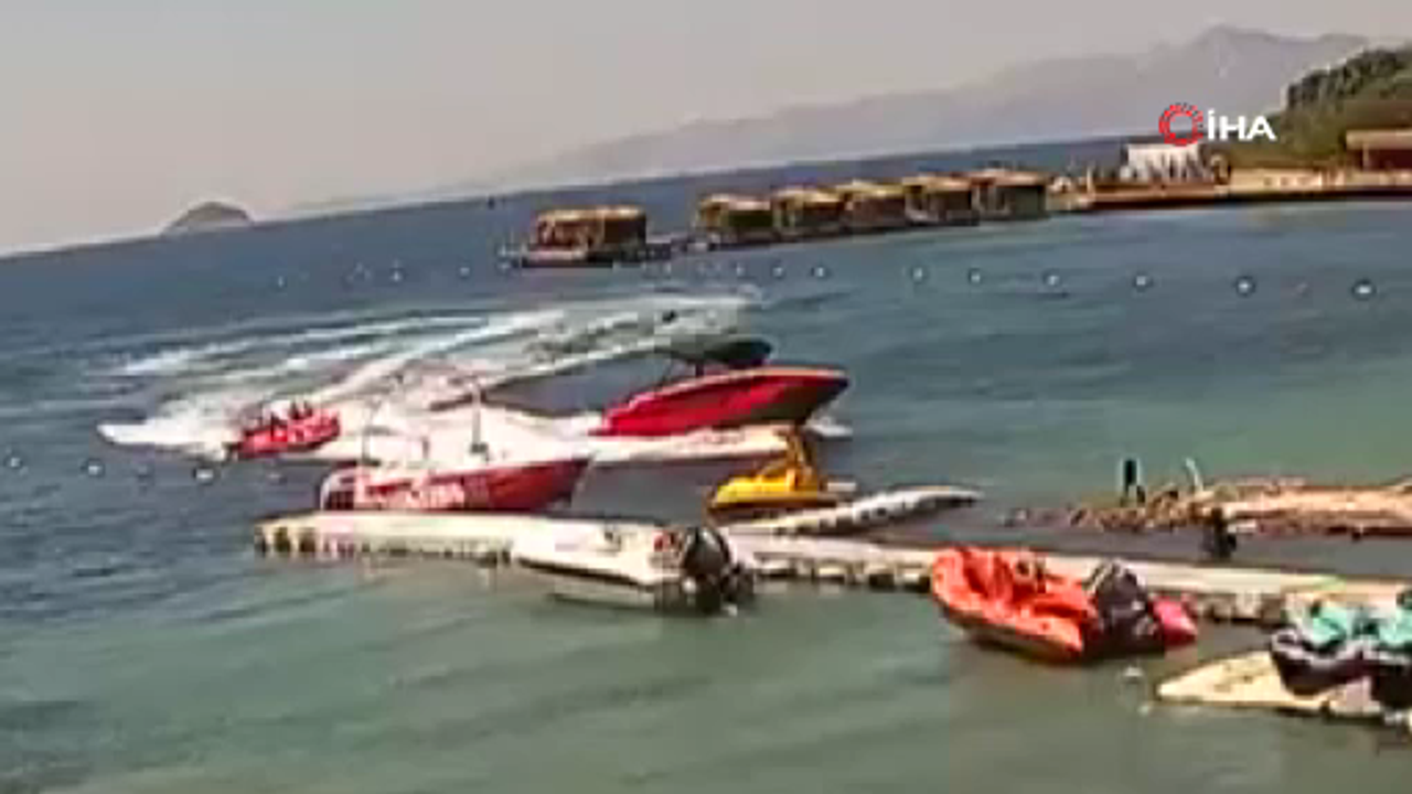 Kaza, öğle saatlerinde Bodrum’daki lüks bir otelin önünde bulunan su sporları alanında gerçekleşti. Su sporları işletmesine ait bir sürat teknesi tarafından çekilen deniz yatağı, parkur iskelesinde bağlı başka bir sürat teknesine hızla çarptı. Çarpmanın etkisiyle deniz yatağındaki turistler savrularak teknelere çarptı.
