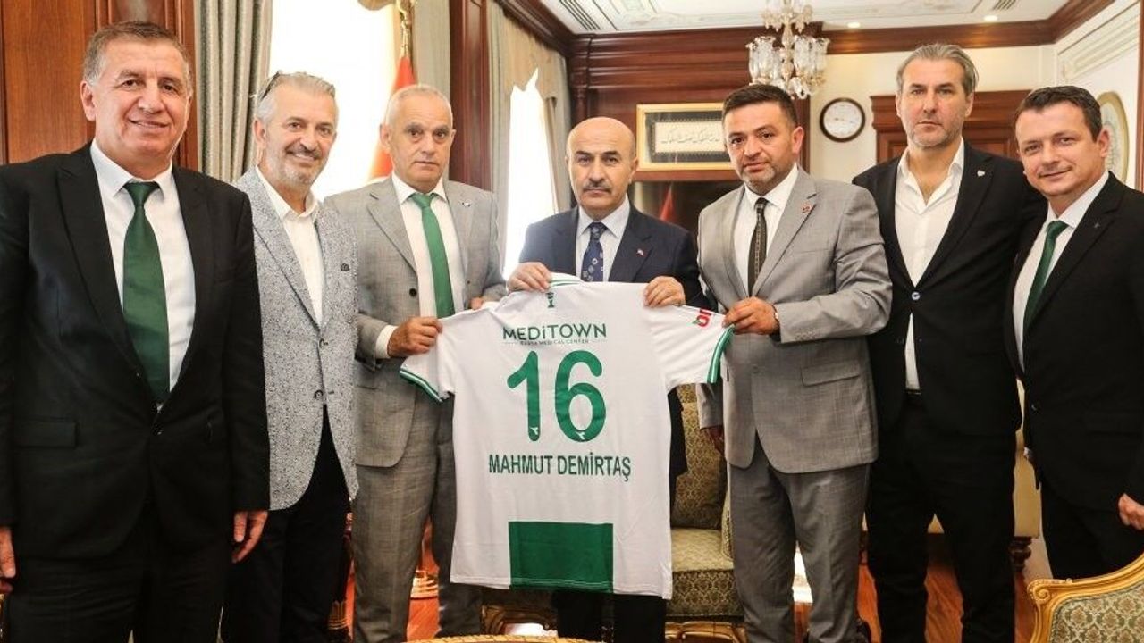 Bursaspor’dan yapılan açıklama şu şekilde: “Başkanımız Recep Günay, Yönetim Kurulu üyelerimiz; Metin Genç, Sedat Topaloğlu, Turan Cesur, Ali Rıza San ve Savaş Sefaile birlikte Bursa Valisi Mahmut Demirtaş’ı makamında ziyaret etti. Ziyaretin sonunda Başkanımız Recep Günay, Demirtaş’a isminin yazılı olduğu formamızı hediye etti.”