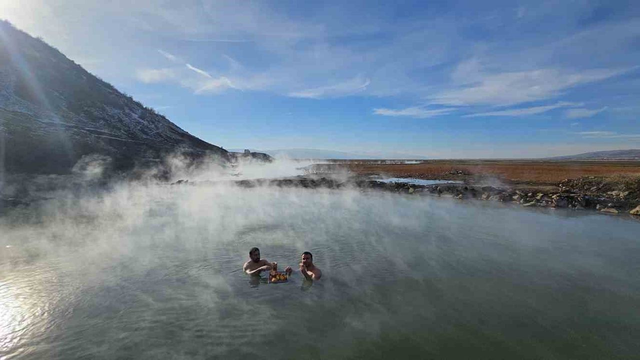 Hava sıcaklığının eksi 15-20 derece olduğu bölgede kaplıca suyunun 40 derecelerde olduğunu kaydeden Tüzün, “Dışarısı buz gibi ancak kaplıcanın içi sıcacık. Dışarda beyaz kar örtüsü var. Ama biz burada bu mevsimde yüzme keyfi yaşayabiliyorum. Bu büyük bir nimet. Herkese tavsiye ediyorum” dedi.