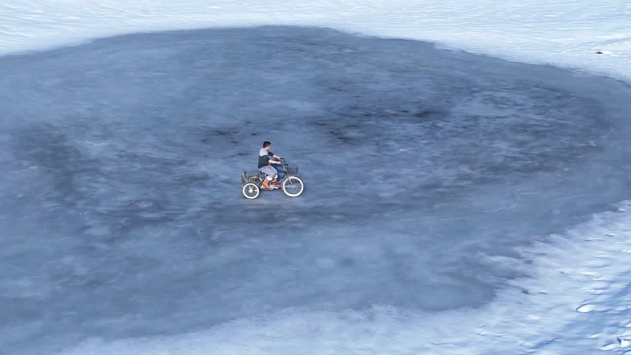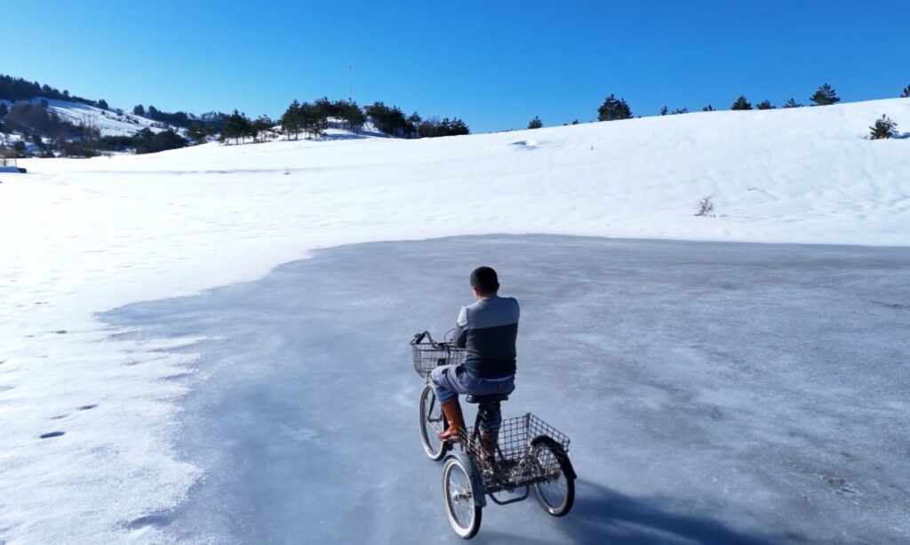Sinop’un Dikmen ilçesi Göllü köyünde soğuk hava nedeniyle göl buz tuttu. Köy sakinlerinden Alaattin Dolma da bisikletiyle köyden çıkarak gölün yolunu tuttu. Alaattin Dolma, buz tabakasıyla kaplanan gölde bisikletiyle tur atarak keyif yaptı. Alaattin Dolma, "Gölün yüzeyi buzla kaplı. Bisikletle buraya kadar geldim. Gölün üzerinde tur attım. Güzel de oldu" dedi.