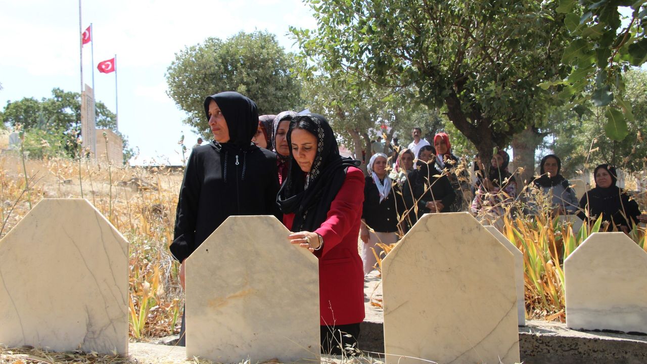 Çevrimli’de terör örgütü PKK tarafından 10 Haziran 1990’da gerçekleştirilen saldırıda hayatını kaybeden 12’si çocuk, 7’si kadın 27 kişiyi anmak için köy mezarlığında düzenlenen törende, Kur’an-ı Kerim okundu.