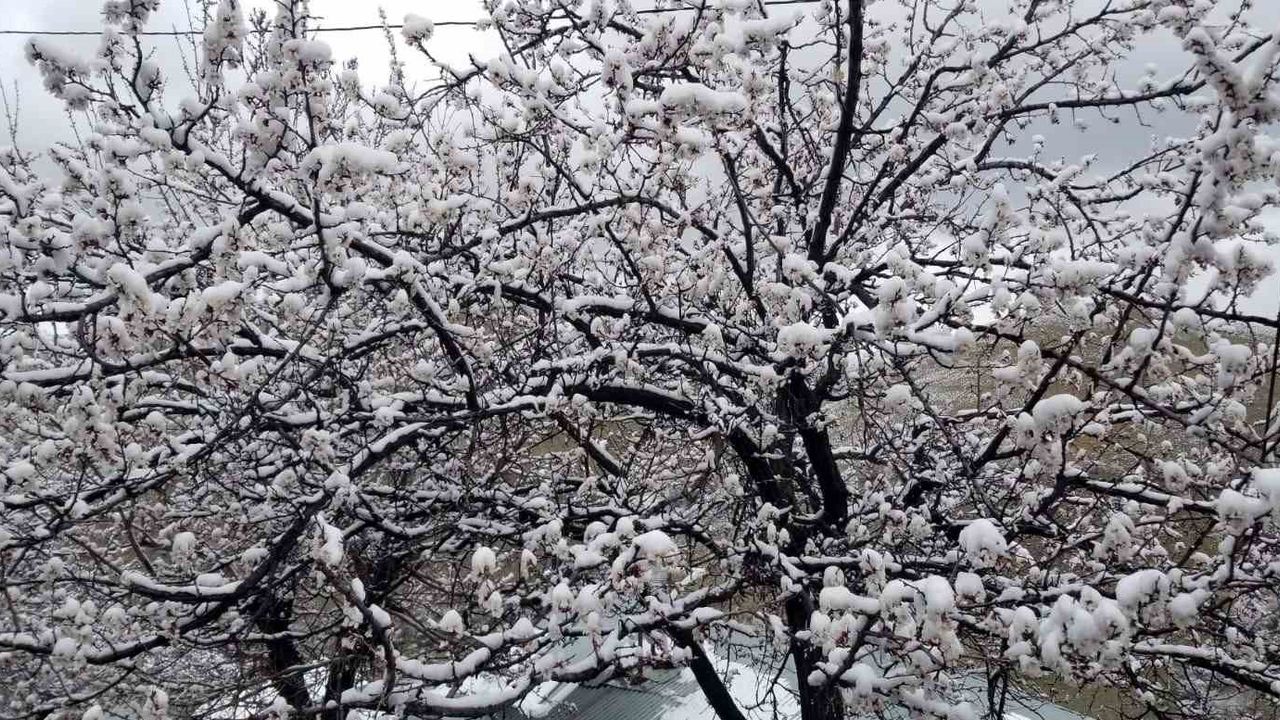 Erzincan’da nisan ayında yağan kar, çiçek açan meyve ağaçlarını kar altında bırakırken, zirai don olayı vatandaşı korkutuyor.