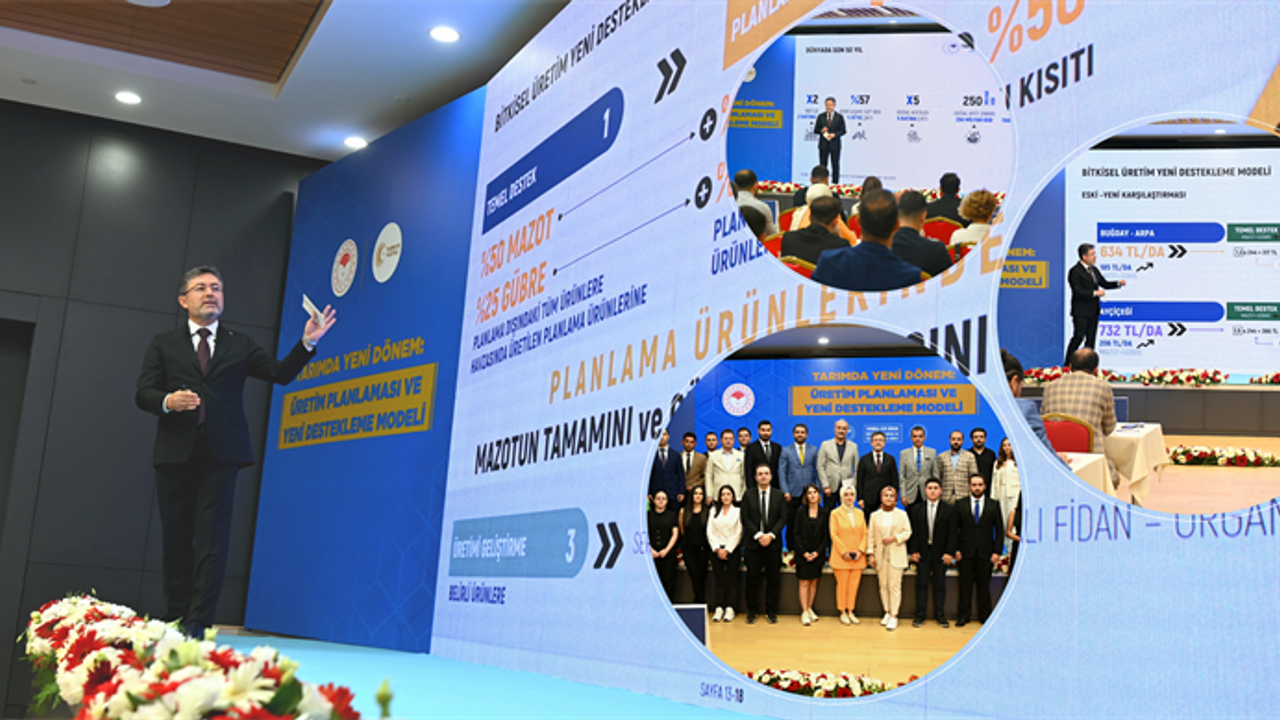 "Destekler ilk kez üretim döneminden önce açıklandı. 3 yıl boyunca geçerli olacak üretim destekleri yine bu süreçte açıklanmış oldu. Stratejik ürünlere ilave planlama desteği yine ilk kez bu modelde gerçekleştirilmiş olacak. Destek tutarlarının girdi maliyetleri baz alınarak belirlenmesi ve değişime göre güncellenmesi bu modelde söz konusu olacak. Su kısıtı olan bölgelerde kademeli üretime dahil olan ürünlere de ilave destek olacak. Kamu tarafından geliştirilen yerli ve milli tohumlara da ilave destek vermiş olacağız. Bitkisel üretim planlamasında yer alan üreticilerimiz, hangi havzada, hangi ürünü ekerse nasıl bir destek alacağını bugünden itibaren önümüzdeki 3 yıl boyunca biliyor oldu. İleriye doğru, üçer yıllık periyotlarda açıklamış olacağız."