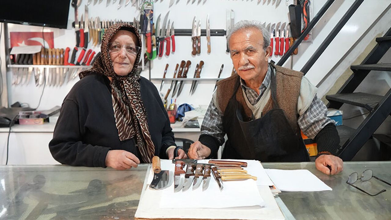 El emeği bıçak üretiminin son temsilcilerinden olan İhsan Binay’a işlerinde yardımcı olan eşi Meliha Binay ise, “Elimden geldiği kadar destek oluyorum. Beraber dükkanı açıyoruz, beraber kapatıp evimize gidiyoruz. Bu sanatı sürdürecek kimse kalmadı. Çırak bulamıyor, ben de gücüm yettiği kadar destek oluyorum” ifadelerini kullandı.