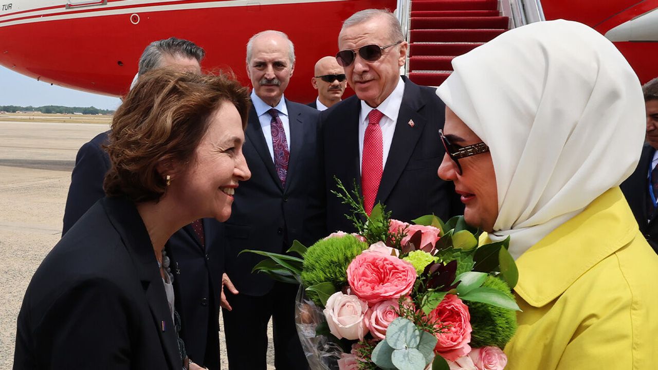Cumhurbaşkanı Erdoğan'ı Andrews Askeri Hava Üssü'nde TBMM Başkanı Numan Kurtulmuş, Türkiye'nin Washington Büyükelçisi Sedat Önal, Cumhurbaşkanlığı Savunma Sanayii Başkanı Haluk Görgün ve diğer ilgililer karşıladı.