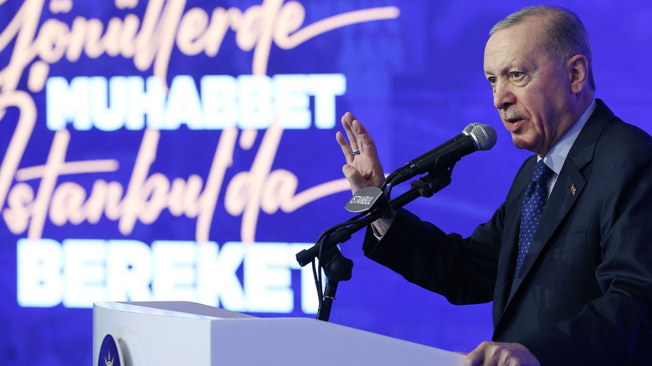 "CHP yönetimi belediye soyguncularını aklayan bir aparata dönüşmüştür"Konuşmasında İBB’ye yönelik yolsuzluk operasyonuna da değinen Erdoğan, "Bizim belediyelerimiz yolsuzluktan yana olmayacak. Bizim belediyelerimiz haksızlıktan yana olmayacak. Bizim belediyelerimiz hak, hakikat, helal, haram nedir bunu bilerek halkına hizmet edecek. Bu mübarek günleri milletimizin iç cephesini takviye için fırsata çevirmeye çalışırken, bakıyorsun ana muhalefet tam tersi gündemle hareke ediyor. Önce Suriye’de eski rejim artıklarının çıkardığı olayları bahane ederek mezhepçilik fitnesini alevlendirmek istediler. Birbirimize daha sıkı kenetlenerek bu oyunu boşa çıkardık. Milletimiz CHP’nin Suriye’deki ateşi ülkemize taşıma tezgahına 14 yıl boyunca olduğu gibi düşmedi. Bu sefer bu yolsuzluk operasyonu üzerinden milletimizi provoke etmeye kalkıştılar. 4 gündür milletin huzurunu kaçırma adına ne varsa hepsini yapıyorlar. Önlerine gelene hakaret etmekten, sadece görevini yapan polislerimize saldırmaya, yolsuzluk ihbarlarını araştıran yargı mensuplarına göz dağı vermekten, sokak terörü ile milli iradeyi baskı altında almaya kadar ne ararsan bunlarda her şey var. Son olarak bugün basın yayın kuruluşlarını da alenen tehdit ederek nasıl bir ruh halinde olduklarını ifşa ettiler. Televizyonların, medya gruplarının adını bile vererek ‘hepinizin hesabını tutuyorum’ diyerek medyayı tehdit ettiler. Böyle siyaset olur mu? Böyle politika olur mu? İstanbul başta olmak üzere şehirlerimizde bir gerilim ve kargaşa atmosferi oluşturmak için her yolu deniyorlar. Gelinen noktada şunu net görebiliyoruz. Mevcut yönetim CHP seçmenlerinin taleplerini meclise taşıyan bir parti değil gözünü para bürümüş bir avuç belediye soyguncusunu aklayan bir aparata dönüşmüştür. Belediyelerden nemalanan çıkar şebekeleri CHP’yi boğazına kadar yolsuzluğa, hukuksuzluğa bulaştırmış durumdadır" ifadelerini kullandı.