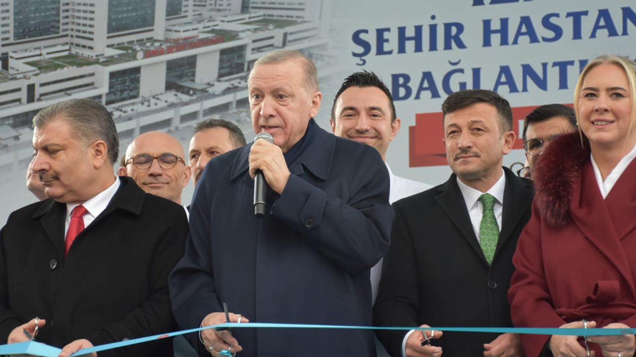 “İzmir’in de bu kutlu mücadelede bize güç vermesini bekliyoruz”Son dönemde kamuoyunda dedikodular ve spekülasyonlar üzerinden yürütülen kampanyalar olduğuna işaret eden Erdoğan, “Biz tüm bu tuzakları bozarak yolumuza devam ederken hiçbir zaman asıl hedeflerimizden kopmuyor, asıl mücadelemizden taviz vermiyoruz. Her dönemde olduğu gibi bugün de bizi en iyi milletimizin anladığına inanıyorum. Verdiğimiz mücadelede bugüne kadar en büyük gücümüz milletimizin desteği olmuştur. Bundan sonra da erkeğiyle, kadınıyla, genciyle, yaşlısıyla bu ülkenin 85 milyonunun duası ve desteğiyle yolumuza devam edeceğiz. Çünkü biz bu milleti tarifsiz duygularla seviyoruz. Çünkü biz bu milleti özellikle yapacağımız hizmetlerle ibadet mertebesinde görüyor ve seviyoruz. Çünkü biz medeniyetimizin ve tarihimizin son kalesi bu ülkeyi mutlaka dünyada hak ettiği yere yükseltmek istiyoruz. İzmir’in de bu kutlu mücadelede bize güç vermesini, destek vermesini, heyecan vermesini bekliyoruz. Şehir hastanemiz ve diğer sağlık birimlerimizle, İzmirli kardeşlerimizi sağlıkla, mutlulukla yaşayacakları bir hizmet altyapısına kavuşturduk” diye konuştu.