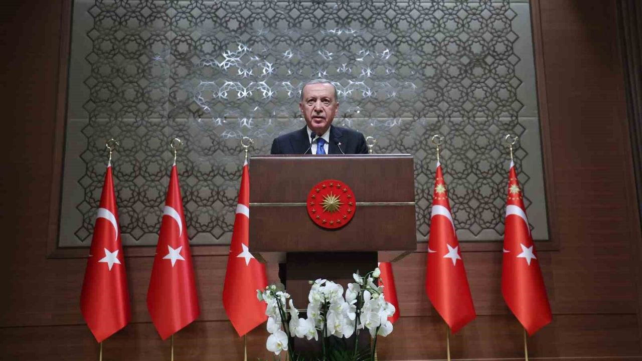 İslam aleminin bugün geçmişte hiç olmadığı kadar derin bir sarsıntıdan, çetin bir sınavdan, adeta bir varlık-yokluk imtihanından geçtiğini belirten Cumhurbaşkanı Erdoğan, ”Kitabullaha sımsıkı tutunmamız, Allah’ın ipine dört elle sarılmamız, Peygamber Efendimizin Aleyhissalatü Vesselam sünnetini kendimize rehber edinmemiz gereken zorlu bir süreci hep birlikte tecrübe ediyoruz. İsrail’in on yıllardır işgal ettiği, 1 yılı aşkın süredir de tüm dünyanın gözleri önünde soykırım uyguladığı Gazze ve Filistin toprakları başta olmak üzere İslam coğrafyasının önemli bir bölümü bugün ne yazık ki istikrasızlıkla, çatışmayla, savaşla, yoklukla ve zulümle boğuşuyor” ifadelerini kullandı.