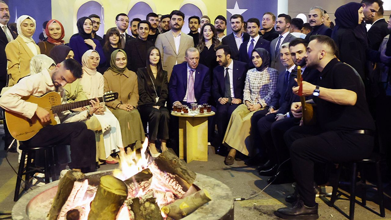 Cumhurbaşkanı Recep Tayyip Erdoğan, AK Parti İstanbul İl Başkanlığı binasında gençlerle buluştu. Ateş başında gençlerle oturan Cumhurbaşkanı Erdoğan, sohbet ederek çay içti.