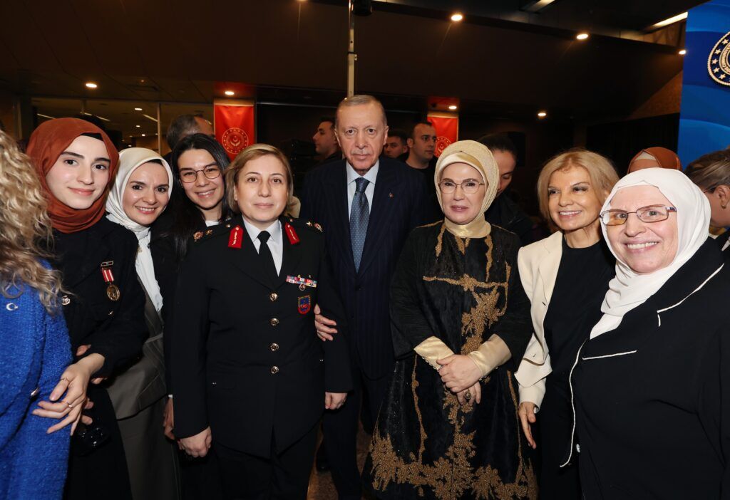 Cumhurbaşkanı Erdoğan konuşmasının devamında, "Bizim inanç değerlerimize göre kadın toplumun omurgasıdır. Tarihimize baktığımızda dönüm noktalarımızda hep kadınlarımızın yer aldığını görürüz. Nene Hatunlar, Halime Çavuşlar, Kara Fatmalar, Binbaşı Ayşeler ve daha niceleri kimi zaman cephe gerisinde kimi zaman en ön safta bu millet için canlarını ortaya koydular. Kadınlar zor zamanlarda sergiledikleri dirayetli tavırlarıyla, medeniyetimize yaptıkları eşsiz katkılarıyla evlerimizde huzurun, vatanımızda dirliğin, milletimizin fertleri arasında birliğin teminatı oldular. Ne 15 asırlık İslam tarihinin ne de binlerce yıllık Türk tarihinin kadınları dışlayarak yazılması mümkün değildir. Hazreti Hatice validemiz ve Hazreti Ayşe annelerimiz İslam medeniyetinin birer kutup yıldızı olarak isimlerini mümin gönüllere nakşetmişlerdir. Batı’da kadın hakları gündemde bile yokken bizde 1843 yılından itibaren kadınlar resmi olarak da çalışma hayatında yer almaya başlamışlardır. Kadınlara devlet memuriyetinde görev alma hakkı 1913 yılında verilmiştir. Batı’dan bile önce kadınlar ülkemizde 1934 yılında seçme ve seçilme hakkına kavuşmuştur. Her ne kadar bu hakkın kullanımında özellikle darbe dönemlerinde çeşitli engellerle karşılaşılsa da yasal olarak bu imkana sahip olunmuştur. Göreve geldiğimiz ilk günden itibaren kadınların her alanda önlerini açmaya, haklarını teslim etmeye çalıştık. Kadınlarla ilgili attığımız adımları kısaca hatırlatmak istiyorum. 2003’te Aile Mahkemeleri’ni kurduk. Yeni İş Kanunu ile işçi işveren ilişkilerinde cinsiyet bazlı ayrımcılığa son verdik. 2004’te Anayasa’nın 10. maddesine yaptığımız eklemelerle kadın erkek eşitliğini güvence altına aldık. Nüfusu 50 bini geçen belediyelere kadın ve çocuklar için konukevi açma zorunluluğu getirdik. 2008’de yaptığımız düzenlemelerle kadınlarımıza doğum, sağlık ve emeklilik gibi konularda yeni haklar tanıdık. Eğitimde, iş hayatında fırsat eşitliğini tam ve gerçek anlamda sağlamak üzere ülkemiz için bir utanç vesikası olan başörtüsü yasağını bir daha geri gelmemek üzere kaldırdık. Böylece kadınların seçilme ve çalışma haklarını da özgürce kullanmasını temin ettik.
