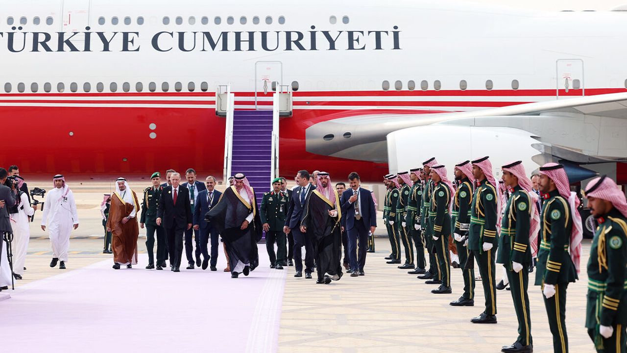 Suudi Arabistan'ın başkenti Riyad, liderler düzeyinde İslam İşbirliği Teşkilatı ve Arap Birliği’nin ortaklaşa düzenleyeceği Olağanüstü İslam Zirvesi’ne ev sahipliği yapıyor. Cumhurbaşkanı Recep Tayyip Erdoğan, Olağanüstü İslam Zirvesi’ne katılmak üzere Riyad’a geldi. Cumhurbaşkanı Erdoğan’ı taşıyan uçak TSİ 12.45 sıralarında Riyad’a indi.