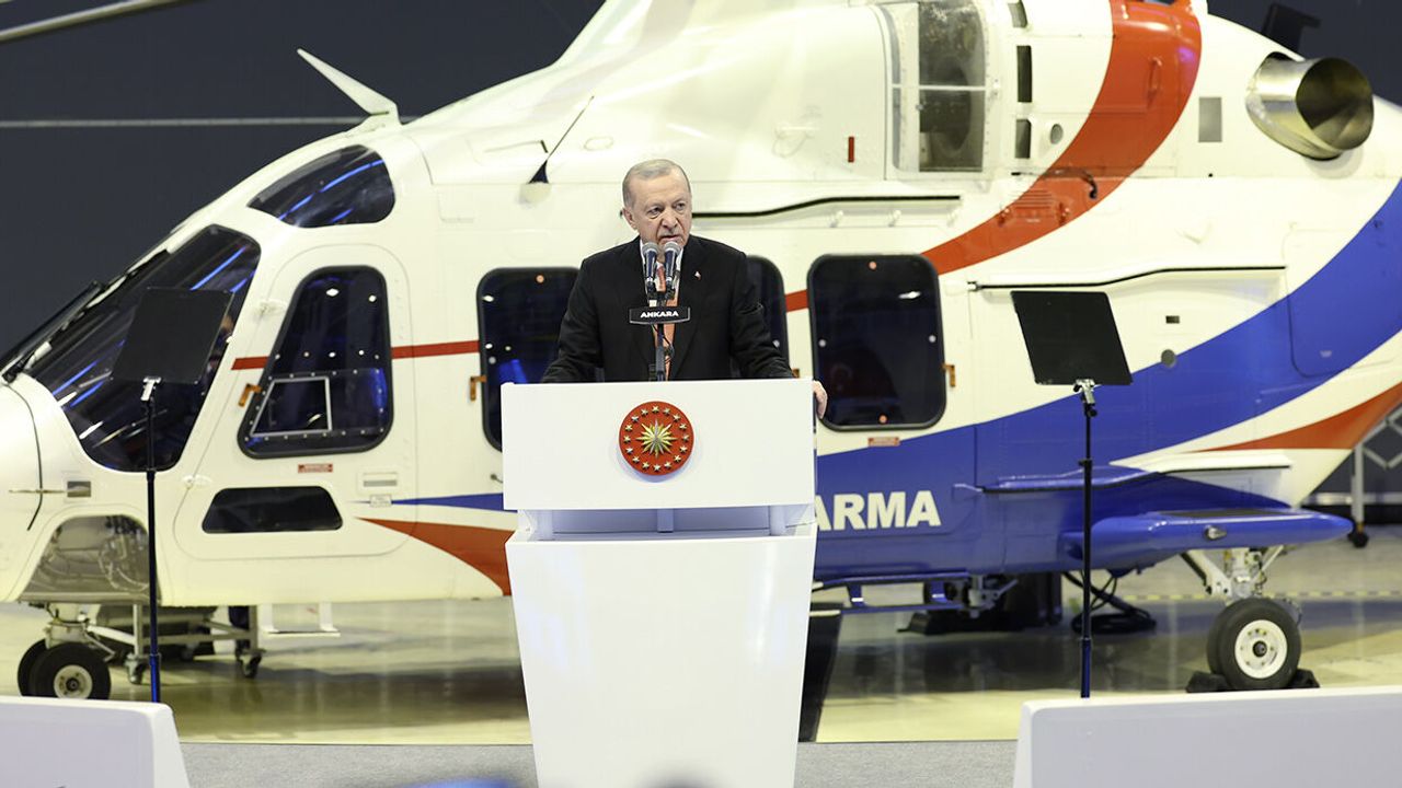Şu an çatısı altında olduğumuz TUSAŞ, Türk savunma sanayinin nasıl badireler atlattığının, hangi zorluklarla, hangi engellerle karşılaştığının en canlı şahitlerinden biri olduğuna dikkat çeken Erdoğan, "Cumhuriyetimizin ilk yıllarında Gazi Mustafa Kemal’in başlattığı sanayi hamlesinde savunma sanayimiz de bulunmaktaydı. Vecihi Hürkuş, Şakir Zümre, Nuri Demirağ, Nuri Killigil gibi müteşebbislerin gayretlerini bugün bile hayranlıkla hatırlıyoruz. Ancak bu vizyoner çabaların, içeriden ve dışarıdan birileri tarafından nasıl akamete uğratıldığını da hepimiz çok iyi biliyoruz. Türkiye çok erken başladığı ilk etapta çok önemli mesafe de aldığı bu yarıştan maalesef kopartılmıştır. Savunma sanayi alanında ülkemiz neredeyse tamamen dışa bağımlı hale gelmiştir. Kıbrıs Barış Harekatı’nda dışa bağımlı olmanın sakıncalarını hem de acı bir şekilde tecrübe ettik. Önce tehditle başlayan ardından ambargoyla devam eden süreç ülkemiz için kendi kendine yeten bir savunma sanayinin önemli göstermiştir. Halkımızın desteğini kurulan silahlı kuvvetlerimizi güçlendirme vakıfları eliyle hayata geçen ASELSAN, TUSAŞ, HAVELSAN sonrasında ROKETSAN gibi kurumlar bu süreci ürünleridir” diye konuştu.