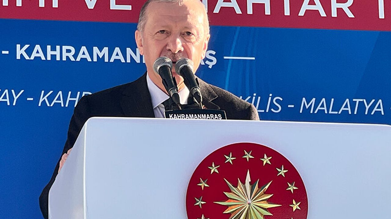 Burada konuşan Erdoğan, Kahramanmaraş’ın herkesin gönlünde ayrı bir yere sahip olduğunu belirterek, “Kahramanmaraş, her ferdiyle, her karış toprağıyla gönlümüzde ayrı bir yere sahiptir. Elbette Sütçü İmam’ın, Afşin Bey başta olmak üzere şairlerin bu güzel şehri ayrıcalıklı kıldığını biliyoruz. Kahramanmaraş’ın kahramanlığı sadece adında değil, DNA’sındadır. Kahramanmaraş’ın kahramanlığı tabiatına yakışır şekilde acıların üstesinden gelme kabiliyetindedir. Bu kahraman şehir, bu yiğit şehir, istiklal mücadelesinin öncüsü bu şehir, maalesef 6 Şubat depremlerinde sarsıldı, yıkıldı. Nice evladını kara toprağın bağrına verdi. Rabbim hepinize sabır versin. Kahramanmaraş’ı yarı yolda bırakmadık, bırakmıyoruz. Acıların paylaştıkça azalacağı inancıyla yüreklerimizi birleştiriyor, kalplerimizi birbirine kenetliyoruz. Rabbim, ülkemizi, şehirlerimizi her türlü afet, felaketten muhafaza buyursun. Rabbim, salonlara sığmayan şu muhabbetimizi daim eylesin. Büyük acılar, büyük sonuçlarla milletlerin kader çizgilerindeki kritik yol ayrımlarını ifade eder. Kara günleri geride bıraktık. Kahramanmaraş’ı küllerinden doğarcasına yeniden inşa ediyoruz. 155 bininci konutumuzun kurasını çekerek anahtarlarını hak sahiplerine teslim ettik. İçerisinde 17 bin 500 kişilik stadyumun olacağı büyük bir spor kompleksinin yapımına başlıyoruz” ifadelerini kullandı.