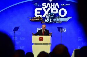 "SAHA EXPO savunma sektöründe önemli bir platform haline gelmiştir"SAHA İstanbul’un bundan 9 sene önce savunma ve havacılık sektörünün lokomotifi olma hedefiyle kurulduğunu söyleyen Cumhurbaşkanı Erdoğan, "Yerlilik oranlarını artırmayı, kritik teknolojileri ülkemize kazandırmayı, uluslararası rekabet gücümüzü yükseltmeyi amaçlayan SAHA İstanbul, kuruluşundan bu yana geçen sürede çok büyük mesafe kat etti. SAHA İstanbul bugün 52 farklı sektörden üyeye, bin 200’ü aşkın şirkete, 29 üniversiteye ve 45 şehre yayılmış geniş bir ağa ulaşmıştır. Kısa sürede ulaşılan bu geniş ağı, savunma ekosistemimiz adına çok kıymetli buluyorum. SAHA EXPO’nun ise Türk şirketlerini küresel pazarla buluşturan bir köprü vazifesi üstlendiğine tanık oluyoruz. 2018’de ilki düzenlenen SAHA EXPO Fuarı ile ülkemiz firmalarının iş geliştirme ve ihracat çabalarını samimiyetle destekliyoruz. Rakamlar SAHA EXPO’nun sektörde geldiği seviyeyi ortaya koymaktadır. 150 binden fazla ziyaretçi, 300’ün üzerinde delegasyon, 150’den fazla alıcı delegasyonu, 120’yi aşkın ülkeden üst düzey katılım, bin 400’den fazla şirket iştiraki ile SAHA EXPO memnuniyetle belirtmek isterim ki savunma sektöründe önemli bir platform haline gelmiştir. Yine fuar boyunca 4,6 milyar doları ihracat sözleşmesi olmak üzere toplam 6,2 milyar dolarlık anlaşmaların imzalanacak olması da dikkate değerdir. Geçen yıl biliyorsunuz savunma ve havacılık sektörümüz toplam 5,6 milyar dolarlık ihracat rakamları yakalamıştır. SAHA EXPO’da neredeyse bu tutara yakın ihracat sözleşmelerine imza atılmış olacak. Ülkemize bu önemli başarıları yaşatan SAHA EXPO’yu ve tüm katılımcı firmalarımızı tebrik ediyorum” diye konuştu.