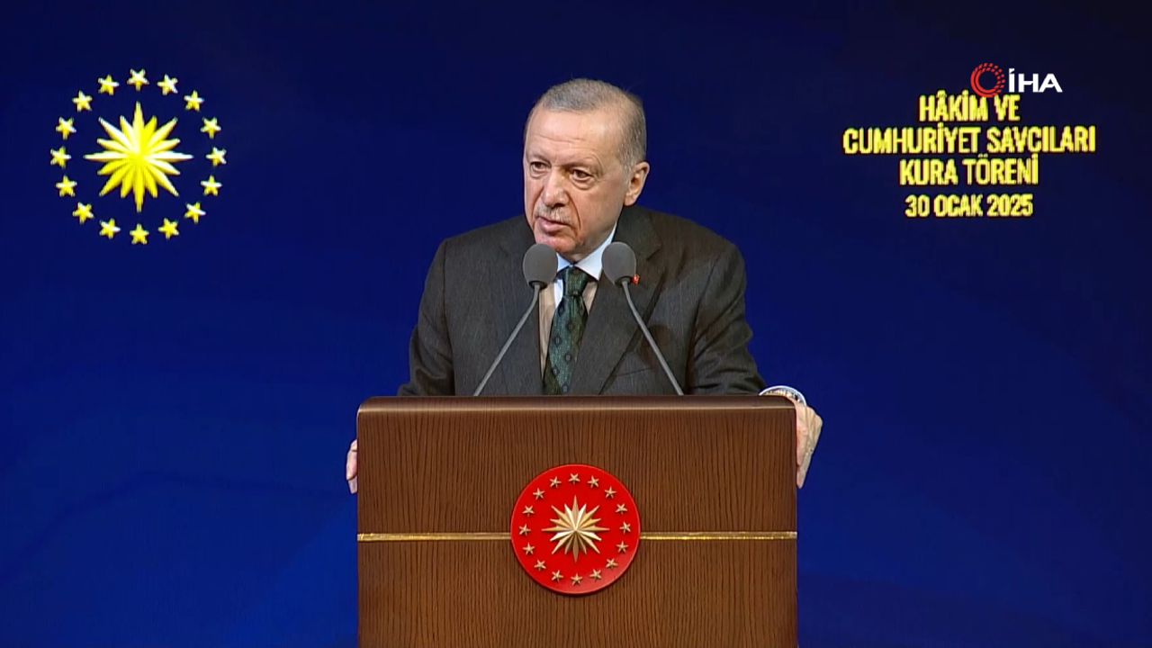 Cumhurbaşkanı Erdoğan, adaletin insan için var olduğunu ve ancak insanla anlam bulduğunu belirterek, "Tabii burada şu hususu da hatırlatmakta fayda görüyorum: Her konuda olduğu gibi adalet dairesinin pürüzsüz işleyişinde de asıl olan insandır. Adalet insan içindir, ancak ve ancak insanla kâhindir. Türk milleti adına karar verirken birikimi, tecrübesi, müktesebatı yanında hukukçunun mihmandarlarından bir diğeri de temiz vicdandır. Vicdanları rahatlatan bir karar vermek kadar vicdanı rahat karar vermek de hayati öneme sahiptir. Bu konuda yaşanan ihmallerin bedelini geçmişte ödemiş bir ülkeyiz. Pusula olarak aklı ve vicdanı kendilerine yetmeyenlerin adalete güveni nasıl tahrip ettiklerini 17-25 Aralık başta olmak üzere birçok kez gördük. Yargıyı ideolojik, örgütsel ve ekonomik çıkarlarına alet edenler hem adaleti araçsallaştırırlar, hem de kendi varlık nedenlerine yabancılaştırırlar. Buradaki genç hakim ve savcılarımızın vebali son derece ağır bir görevi icra ederken bunu her zaman akıllarında tutmalarını bekliyorum. İnanıyorum ki her biriniz zorluklar karşısında yılmadan hukukun ve vicdanın sesi dışında hiçbir sese aldırmadan vazifenizi yapacaksınız. Gelecekte vereceğiniz kararlarla ihtilafları sizler çözeceksiniz. Davalı tarafların adalet beklentisini karşılayacağınıza, vicdanları teskin edeceğinize, her dosyanın aynı zamanda bir insan olduğunu asla unutmayacağınıza yürekten inanıyorum” ifadelerini kullandı.