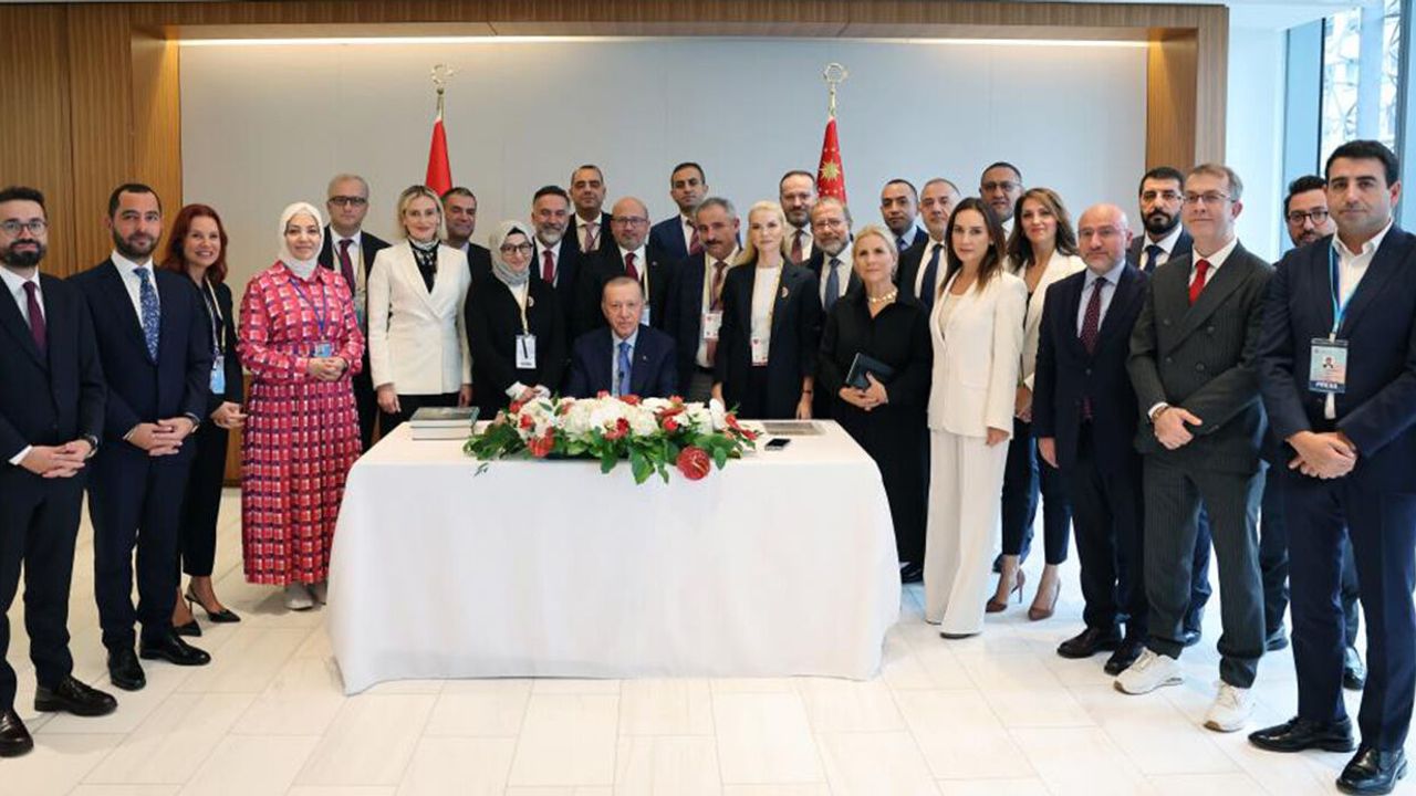 Erdoğan, Birleşmiş Milletler 79. Genel Kurulu'na katılmak üzere bulundukları New York ziyaretini tamamlamak üzere olduklarını, öğleden sonra gerçekleştirecekleri ikili kabullerle ziyaretlerini başarıyla hitama erdirmiş olacaklarını belirtti. Erdoğan, geçen cumartesi gününden bu yana oldukça yoğun bir programları olduğunu, Birleşmiş Milletler Genel Kuruluna hitabın yanında birçok temas gerçekleştirdiklerini, muhtelif etkinliklere iştirak ettiklerini ifade etti. Birleşmiş Milletler Genel Kurulu görüşmeleri öncesinde 22 Eylül günü düşünce kuruluşu temsilcileriyle bir araya geldiklerini hatırlatan Erdoğan, “Aynı günün akşamında Türk-Amerikan Ulusal Yönlendirme Komitesi'nin (TASC) geleneksel akşam yemeğine iştirak ettik. Türk-Amerikan toplumunun ülkemizin çıkarlarını savunma noktasında yürüttüğü faaliyetleri takdirle takip ediyoruz. TAİK'in düzenlediği 15. Türkiye Yatırım Konferansı'nda Amerikan iş çevreleriyle istişarelerde bulunduk. Amerikalı girişimcilere ülkemizin sunduğu yatırım fırsatlarını anlattım. Türkiye ekonomisinin önümüzdeki dönemine dair yol haritasını kendileriyle paylaştık. Amerika son iki senedir en fazla ihracat yaptığımız ikinci, en fazla ithalat yaptığımız beşinci ülke oldu. İkili ticaret hacmimiz geçtiğimiz yıl 30 milyar doları aştı. Toplam 100 milyar dolarlık ticaret hedefimize iyi bir planlamayla ulaşabileceğimize inanıyoruz” diye konuştu.