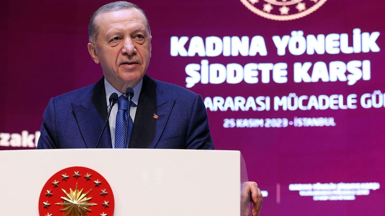 İstanbul Sözleşmesi’nden çekilmenin kadınların hakları ve onlara yönelik şiddetle mücadeleye en küçük bir olumsuz etkisi olmadığını vurgulayan Cumhurbaşkanı Erdoğan, "Marjinal grupların ve sapkın akımların istismar malzemesi haline gelen İstanbul Sözleşmesi’nden çekilmemizin kadınların hakları ve onlara yönelik şiddetle mücadeleye en küçük bir olumsuz etkisi olmamıştır. Bu konuda belli çevreler tarafından yürütülen tezviratın hiçbir temeli hiçbir dayanağı yoktur. Çünkü mücadelenin asıl somut araçları 6284 sayılı kanun başta olmak üzere hukukumuza derç ettiğimiz mevzuat ile zihinlerde gerçekleştirdiğimiz dönüşümdür. Bu kanun kadın hakları ve ailenin korunması açısından spekülasyonlara kurban edilemeyecek kadar mühim bir kazanımdır. Bu kazanımların örselenmesine kesinlikle izin vermeyeceğiz. Elbette kanunun mahiyetinde ve uygulanmasında sorunlar varsa çözecek, eksikler varsa giderecek, daha da güçlendirilmesi gereken unsurlar varsa gereğini mutlaka yapacağız. Nitekim bu amaçla mevzuatımızı sürekli yeniliyoruz. Bu çerçevede 2006 yılında yayımladığımız çocuk ve kadınlara yönelik şiddete ve cinayetlere karşı alınacak tedbirlerle ilgili genelgeyi bugün yayımladığımız yeni bir genelge ile güncelledik. Yeni genelgemizde kurduğumuz kadına yönelik şiddetle mücadele koordinasyon kurulunun Türkiye Yüzyılı’na yakışır faaliyetler yürüteceğine inanıyorum. Yine bugün kamuoyu ile paylaştığımız 2024 yılı faaliyet planımız ilgili bakanlıklarımızın ve kurumlarımızın katkıları ile hazırlanmıştır. Son faaliyet planımız adalete erişim ve mevzuat politika ve koordinasyon, koruyucu ve önleyici hizmetler, toplumsal farkındalık, veri ve istatistik başlıklarındaki beş ana hedef üzerine inşa edilmiştir. Bu plan 66 alt hedefi ve 218 faaliyet başlığı ile kadına yönelik şiddet konusundaki güçlü irademizin somut bir ifadesidir. Az önce planın detaylarını ve yapılacak faaliyetleri hep birlikte sesli olmasa da ekranda izledik. İnşallah planda belirlenen hususların etkin ve kuşatıcı bir şekilde hayata geçirilmesini sağlayacağız. Ülkemizin 81 vilayetinin tamamında faaliyet gösteren kadın Konukevleri, ŞÖNİM’ler ve sosyal hizmet merkezleri ile şiddete maruz kalan kadınları devlet güvencesi altına alıyoruz. Kamu görevlileri ve vatandaşlardan oluşan 4 milyonun üzerinde kişiye verilen eğitimler ve seminerlerle kadına yönelik şiddete karşı sıfır tolerans ilkemizin alt yapısını oluşturuyoruz. Şiddetsiz bir Türkiye Yüzyılı için yürüttüğümüz çalışmaları kesintisiz bir şekilde sürdürüyoruz" ifadelerini kullandı.