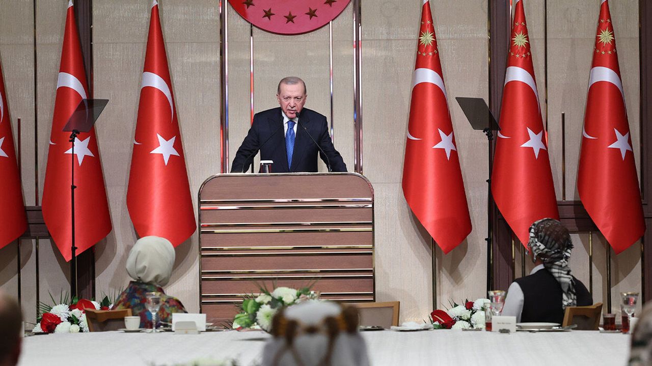 Programda konuşan Erdoğan, "Ülkemizin dört bir yanından 81 ilden gelen kıymetli üreticilerimiz, kıymetli misafirler, sizleri en kalbi duygularımla, hasretle, muhabbetle selamlıyorum. Bu mübarek akşamda Milletin Evinde sizleri ağırlamaktan duyduğum memnuniyeti dile getirerek sözlerime başlamak istiyorum. Soframızı şereflendirdiğiniz için her birinize şükranlarımı sunuyorum. Artık 19. gününü geride bıraktığımız Peygamber Efendimizin cehennem azabından kurtuluş olarak müjdelediği son 10 gününe eriştiğimiz Ramazan-ı Şerifinizin mübarek olmasını diliyorum. Önümüzdeki hafta idrak edeceğimiz Kadir Gecenizi inşallah 30 Mart’ta vasıl olacağımız Ramazan bayramınızı da şimdiden tebrik ediyorum. Bu mübarek ayda tutulan oruçların, yapılan ibadetlerin, edilen duaların milletimizin yanı sıra Gazzeli, Suriyeli ve Yemenli mazlumlar başta olmak üzere tüm Müslümanların birliğine, beraberliğine, zulümden kurtuluşuna vesile olmasını Cenab-ı Allah’tan niyaz ediyorum" ifadelerini kullandı.