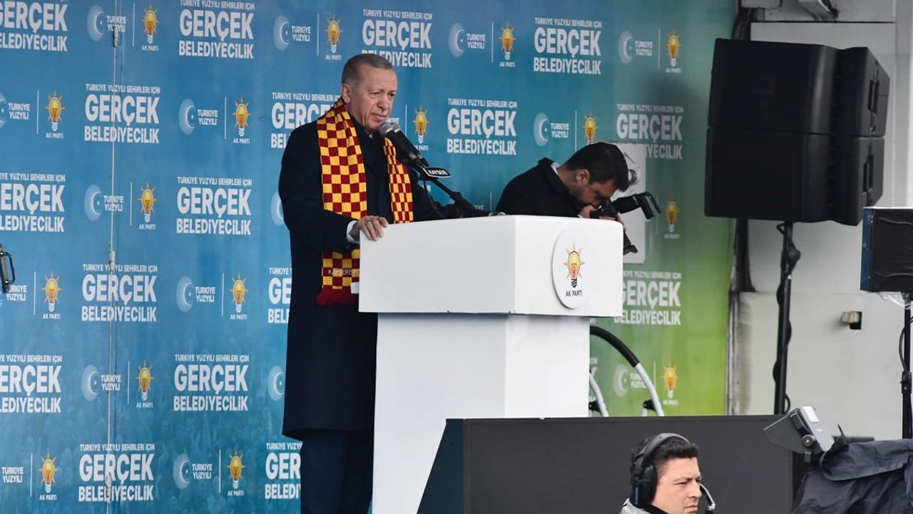 CHP’ye yüklenen Erdoğan, "CHP yönetimi sadece beceriksizlerden değil, kendini geliştirme yönünde hiçbir çabası olmayan beceriksizlerden oluşuyor. Deste deste para sayma görüntülerini halen açıklayamadılar. Seçim kazanmak için birileri ile debeleniyorlar ama orada da durum parlak gözükmüyor. Belediyelerini yönettikleri şehirleri yakın zamanda bekleyen en büyük tehlike deprem olmasına rağmen ellerindeki kaynakları başka yerlerde kullanıyorlar. Yol yapamamakla, yeşili artırmamakla övünen bir zihniyet var. Türkiye yeni bir siyasi anlayış ile karşı karşıyadır, bunun adı zübük siyasetidir. Biz Bay Kemal’in vizyonsuzluğuna tahammül edemezken, başımıza daha beteri musallat oldu. Muhalefetin çağrı konusunda ülkemiz kısır döngüye girmiştir böyle giderse 31 Mart’tan sonra muhalefet cenahında yeni bir meydan muhaberesi yaşanacağı görülüyor. Biz muhalefetin kendini yenilemesini arzu ediyoruz. Onun için 31 Mart’ta ki seçimi sağlam tutmak ve gittikleri yolu göstermemiz lazım" ifadelerini kullandı. Cumhurbaşkanı Erdoğan daha sonra Cumhur İttifakı adaylarını sahneye çağırarak poz verdi.
