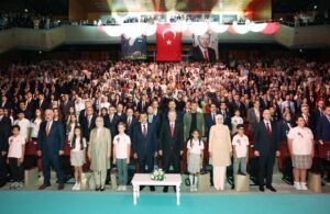 Türkiye’de son 22 yılda eğitimde yapılan yatırımlara dikkat çeken Erdoğan, “2002’de 367 bin olan derslik sayımız, 2 kattan fazla arttı. Buna bağlı olarak derslik başına düşen öğrenci sayısını ilköğretimde 36 dan 23’e, orta öğretimde 30 dan 22’ye indirdik. Böylece evlatlarımız daha kaliteli bir eğitim ortamına kavuştu. 2002’de 540 bin olan öğretmen sayımızı 1,2 milyona yükseldi. Hükümetlerimiz döneminde 800 bin yeni öğretmen ataması yaptık. Ücretsiz ders kitapları, yemek, taşıma, şartlı destekler, burslar ve pansiyon hizmetleri imkanları sunarak eğitimde fırsat eşitliğini güçlendirdik. Son 22 yılda yaklaşık 4 milyar adet ders kitabını ücretsiz dağıttık. Özel eğitim ihtiyacı olan 1.2 milyon öğrencimizin evlerinde, hastanelerde, okullarda eğitime erişimlerini sağlıyoruz. Seçmeli ders havuzunu genişleterek insan, bilim, toplum, din, ahlak ve değerler ile kültür sanat ve spor alanlarında yeni dersler ihdas ettik. Kur’an-ı Kerim ve Hz. peygamberimizin hayatı derslerin yanı sıra geçtiğimiz yıl yeni dersler ilave ettik.