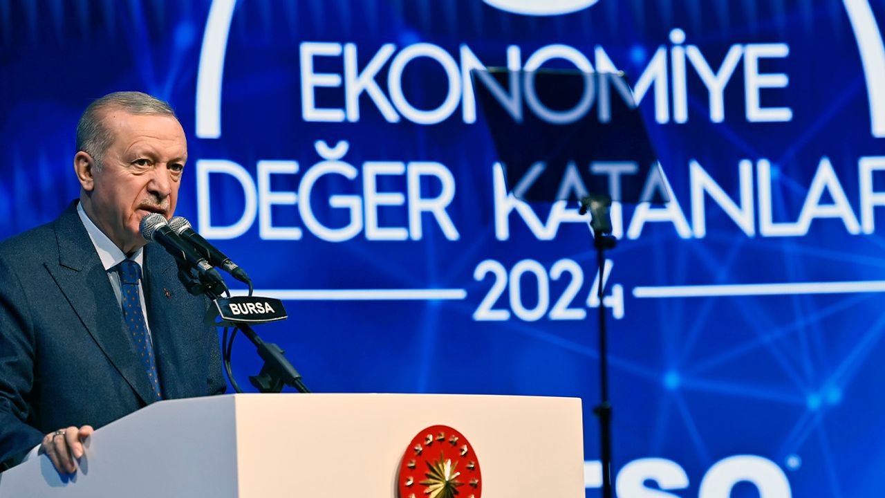 Hiç bir zaman ülkeyi yönetirken popülist davranmadıklarının altını çizen Cumhurbaşkanı Erdoğan, "Hayatın her alanında olduğu gibi siyasette de ülke yönetiminde de gelişmenin ilerlemenin sırrı budur. Yani sürekli daha büyük başarılar hedefler peşinde koşmaktır. Biz 22 yıllık iktidarlarımız süresince Türkiye’nin sorunlarını, sıkıntılarını, krizlerini küçülerek değil büyüyerek aşabileceğine inandık. Ekonomiden savunmaya; dış politikadan, ticarete uzanan geniş alanda bu büyümeyi sağlayacak politikalar uyguladık. Biz ekonomide sabun köpüğü misali gelip geçici başarılarla avunmak istemiyoruz. Kısa vadeli hesaplar peşinde asla değiliz. Ayaklarımızı yere sağlam basıyor adımlarımızı sağlam atıyoruz. Kendi iktidar dönemini hesaplayan tek hedefi seçim olan hükümetler geçici iyileşmelerle halkın gözünü boyadılar ama millete ağır faturalar ödettiler. Türk ekonomisinin kaldırabileceğinden daha ağır vaatlerle gelenler hesap kitap yapmadan bol keseden söz verenler arkalarında telafisi zor enkazlar bırakarak siyasetten silindiler. Millete dimyata pirinç silolarını vaat edenler gün sonunda vatandaşı elindeki bulgurdan da ettiler. Yakın tarihimizde bunu biz de yaşadık. İş dünyamızda yaşadık. 14-28 Mayıs seçimleriyle ülkemiz sadece uçurumun kenarından dönmedi aynı zamanda her biri hazine değerinde 5 sene kazandı. Biz de bu 5 yılı en iyi ve en verimli şekilde değerlendirmek arzusundayız. Yerel seçimlerde muhalefet ile popülist vaat yarışına girmeyerek kararlılığımızı ortaya koyduk. Bundan dolayı siyasi olarak bedel de ödedik ama milletimize ve ülkemize bedel ödettirecek yanlışın içinde olmadık. Ekonomi programımıza güvenimiz ve desteğimiz tam. 2024 yılında seçimlere ve bölgemizde nükseden yeni krizlere rağmen belirlediğimiz hedeflere önemli ölçüde ulaştık. Ülkemize uluslararası sermaye girişi hızlandı. Rezervlerimiz güçlendi. Kur oynaklığı azaldı. Finansman şartları iyileşti. Ülkemizin kredi risk primi de ciddi şekilde düştü. Dünyadaki üç kredi derecelendirme kuruluşunun not artırdığı tek ülke Türkiye oldu. 2025 bütçesinde de gerçekçi adımlarla ve ortak bir gelecek vizyonu ile hareket ettik. Bu sene yatırımlar için 1 trilyon 569 milyar lira kaynak ayırdık. Deprem bölgesinin yeniden inşası yanında, sulama yatırımlarına, organize sanayi bölgeleriyle limanları demiryoluyla birbirine bağlayacak yatırımlara ve sanayi altyapısını hızla tamamlayarak yatırımlara öncelik tanıdık. En güncel tartışma asgari ücret konusunda dolar bazında nereden nereye geldik. Vatandaşımızın her söylediğinin başımızın üzerinde yeri vardır. 22 yıl boyunca vatandaşımızı enflasyona ezdirmeme hassasiyeti malumdur. Ücret artışlarını her zaman enflasyonun üzerinde tutarak halkımızın alım gücünün korunmasını temin ettik. 2002-2025 arası dönemde asgari ücrette reel artış yüzde 290 olmuştur. Son birkaç yıla bakıldığında 2022’de enflasyon yüzde 64,3 iken asgari ücret yüzde 94,6 artmıştır. 2023’te enflasyon yüzde 64,8 iken asgari ücret yüzde 107,3 arttı. 2024’te yıl sonu enflasyon beklentisi yaklaşık yüzde 45 iken asgari ücret yüzde 49,1 arttı. 2025’te yıl sonu enflasyon beklentisinin üzerinde oranla asgari ücret 22 bin 104 lira olarak belirlendi. Bu rakam taban ücrettir. İşverenlerimiz çalışanına daha fazla ücret ödemek isterse buna kimsenin itirazı olmaz. Çalışanlarımızın milli gelirden aldığı pay son 26 ayın en yüksek seviyesine ulaştı. İşgücü ödemelerinin gayri safi hasıla içinde bu yılın 3.çeyreğinde yükseldi. Büyümeden çalışanlar da pay aldı. Türkiye ekonomisi yüzde 5,3 büyürken asgari ücretteki reel artış yıllık ortalama yüzde 5,6 ile büyümenin üzerinde oldu. Bugün 630 doları bulan asgari ücretimiz gelişmekte olan pek çok ülkeden daha yüksek seviyede. Enflasyon hedeflerimiz tek tek gerçekleştikçe vatandaşlarımız alım güçlerindeki artışı daha net görebilecek. 2025 yılı için bu konuda da umutluyuz" ifadelerini kullandı