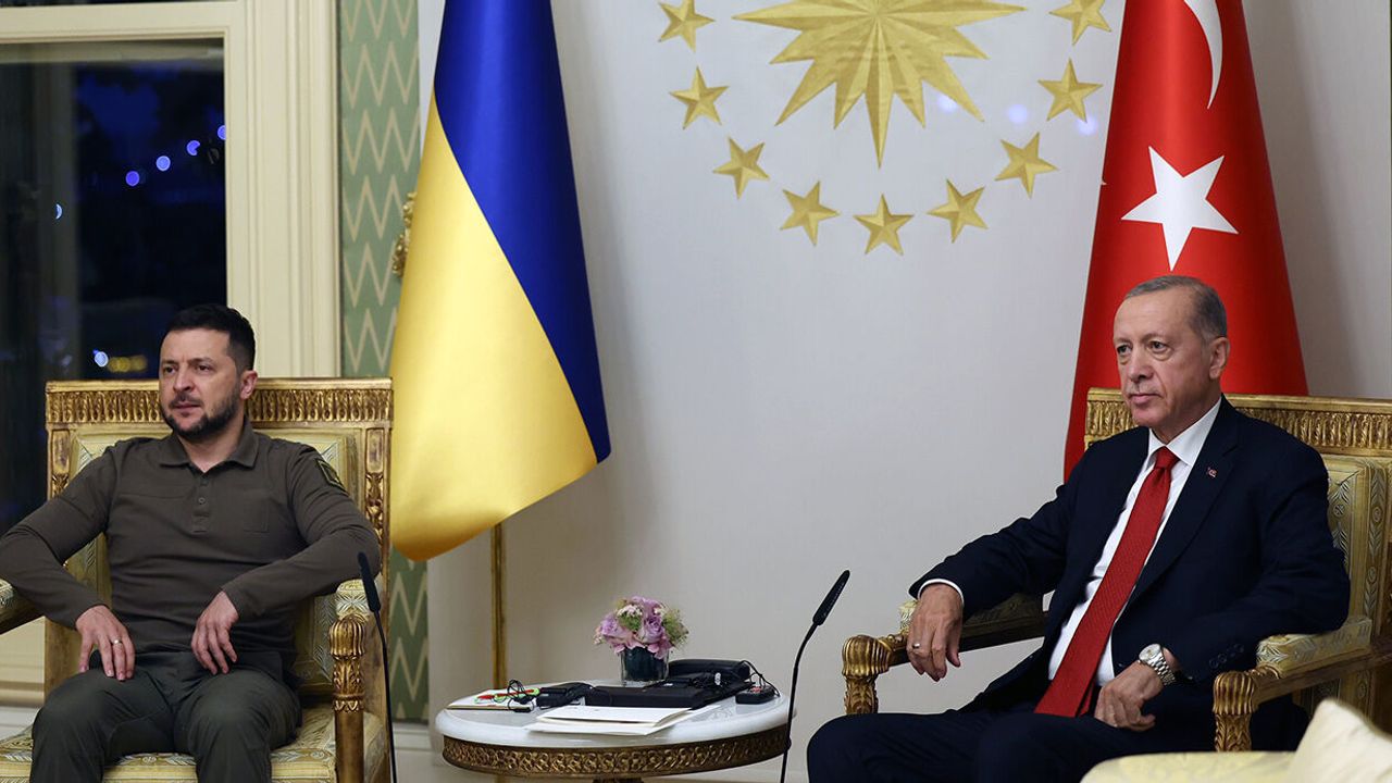 Ukrayna Devlet Başkanı Volodimir Zelenski, Cumhurbaşkanı Recep Tayyip Erdoğan ile Vahdettin Köşkü’nde bir araya geldi. Erdoğan ve Zelenski’nin yaptıkları görüşmelerin ardından ortak basın toplantısı düzenledi.