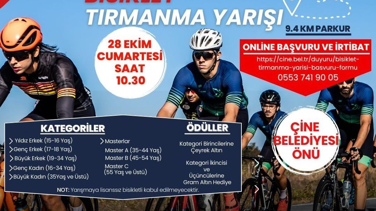 Aydın genelindeki Cumhuriyetin 100. yıl etkinlikleri aralıksız devam ederken, Çine ilçesinde de “Cumhuriyetin 100. yılı Çine-Kavşit Bisiklet Tırmanma Yarışı” yapılacak. Ülke genelinden çok sayıda lisanlı bisikletlinin katıldığı yarış, 28 Ekim Cumartesi günü saat 10.30’da başlayacak. Çine ilçe merkezi belediye önünden Kavşit Yaylası’na kadar hazırlanan 9,4 kilometrelik parkurda, deneyimli sporcular Cumhuriyet’in 100. yılı için pedallayacak. Madran Dağı’na tırmanacak olan bisikletliler, kıyasıya mücadele ederken, yarışta kategori birincilerine çeyrek altın, ikinci ve üçüncülerine ise gram altın hediye edilecek.