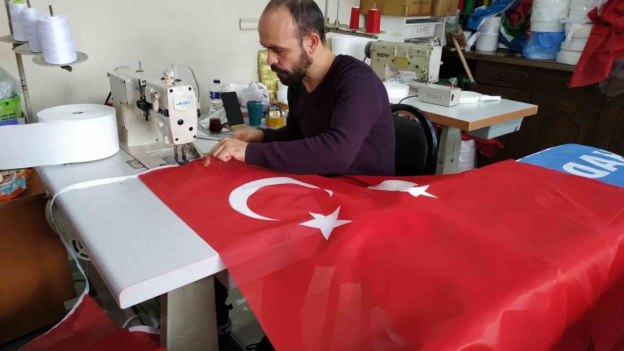 Tüm Türkiye Cumhuriyetin 100’üncü yılını kutlamaya hazırlanırken, bayram imalatçıları ise yoğun mesai harcıyor. 29 Ekim Cumhuriyet Bayramı nedeniyle çift vardiya çalışan bayrak imalatçıları, ellerindeki tüm stokları eritti. Son bir hafta içerisinde küçük bayrak olarak 300-400 bin adet üretim yapan imalatçılar, pazar gününe kadar mesaileri devam edecek.