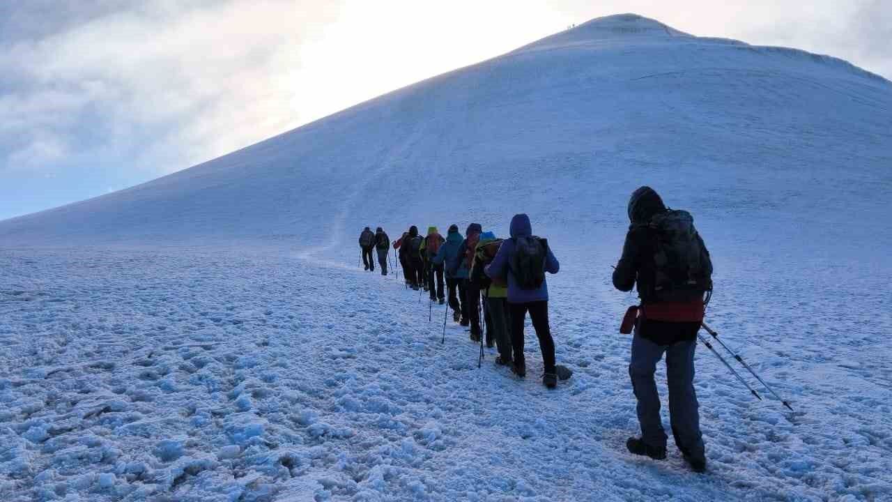 Terörden arındırıldıktan sonra tırmanışa açılan ve yaz-kış dağcı gruplarını ağırlayan Ağrı Dağı, bu defa yerli ve yabancı turistlerden oluşan bir grubu ağırladı. Tırmanış rehberi eşliğinde ilk gün 3 bin 200’e tırmanan dağcılar, burada konakladıktan sonra 4 bin 200 rakıma çıkarak mola verdi. Gece yeniden tırmanışa geçen dağcılar, sis ve fırtına eşliğinde 6 saat sonra Ağrı Dağı’nın zirvesine çıkabildi. Tırmanış anlarının kaydedildiği görüntülerde dağcıların zor anlar yaşadığı ve zirvedeki mutluluğu görüldü.