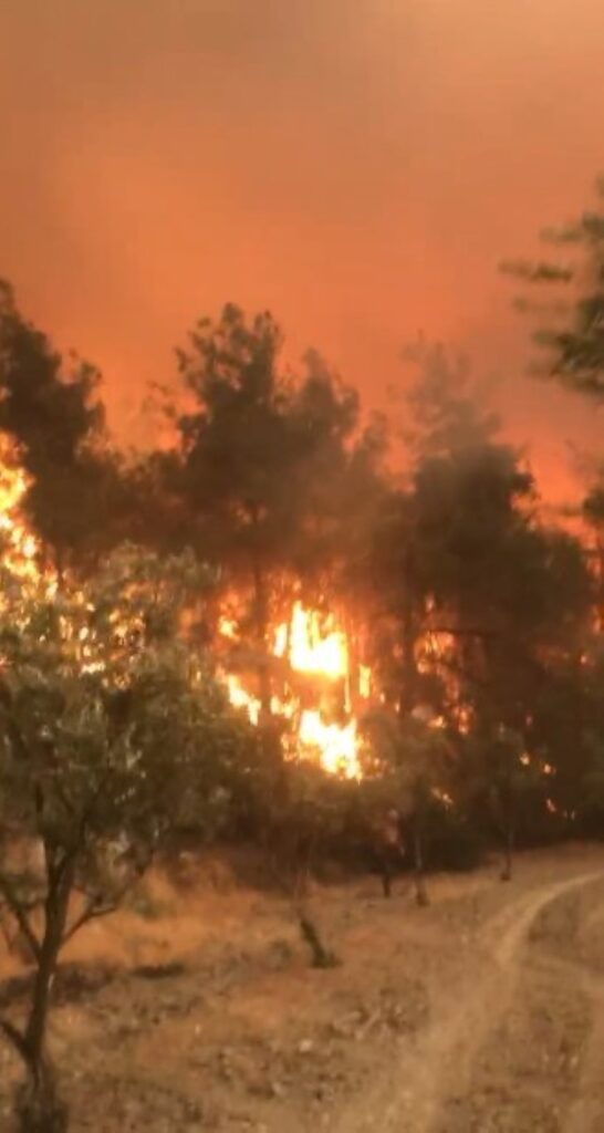 Kayda alınan bir görüntüde, ekibin araçla alevlerin ve yoğun dumanın arasında kaldığı anlar yer alıyor. Görüntülerde alevlerin yola kadar indiği ve dumandan görüş mesafesinin neredeyse sıfıra düştüğü görülürken, araçtaki bir kişinin "Abi çıkmamız lazım, ortada kaldık. Allah’ım, sen yardım et, Ya Rabbim. Allah’ım sen büyüksün" şeklindeki paniği kayda yansıyor. Bahçede çekilen bir başka görüntüde de, vatandaşların ve yangına müdahale eden ekiplerin mücadelesi görülüyor. Bir kişinin "Çık oradan, çıkın" diye bağırması duyulurken, alevlerin bahçeye ulaştığı ve insanların can havliyle kaçıştığı anlar yer alıyor. Görüntülerde ayrıca bir kadının babasına ulaşmaya çalıştığı da görülüyor. Yanan alanları çeken bir vatandaşın da "Allah’ım bu ne, evi de kurtaramadık" diyerek feryat ettiği duyuluyor. Bir diğer görüntüde ise yangına müdahale eden ekiplerin, alevlerle verdikleri zorlu mücadele yer alıyor.