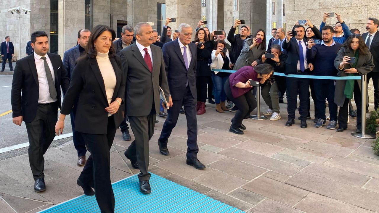 İstanbul Milletvekili Sırrı Süreyya Önder, Van Milletvekili Pervin Buldan ve eski Mardin Büyükşehir Belediye Başkanı Ahmet Türk’ten oluşan DEM Parti heyeti, İmralı’da terör örgütü PKK elebaşı Abdullah Öcalan ile yapılan görüşmenin ardından TBMM Başkanı Numan Kurtulmuş ile görüştü. Heyet, İmralı’daki görüşme sonrası ilk ziyaretini TBMM Başkanı Kurtulmuş’a yaptı. Basına kapalı gerçekleşen görüşme, yaklaşık 1 saat sürdü. Görüşmenin ardından basın mensuplarına açıklamalarda bulunan DEM Parti İstanbul Milletvekili Sırrı Süreyya Önder, “Sayın Meclis Başkanımız Numan Kurtulmuş Bey’i yaptığımız görüşme hakkında bilgilendirdik, önerilerini dinledik. Genel değerlendirme yaptık. Şimdi görüşmeler Sayın Bahçeli ile devam edecek. Sanırım pazartesi CHP, AK Parti ve TBMM’de temsil edilen bütün partileri ziyaret edeceğiz. Bunun zamanlaması randevularla şekillenir. Ziyaretlerden sonra heyet olarak kapsamlı açıklama yapacağız. Görüşmemiz iyi geçti, umutluyuz” dedi. Heyet, saat 15.00’te MHP Genel Başkanı Devlet Bahçeli ile görüşecek.