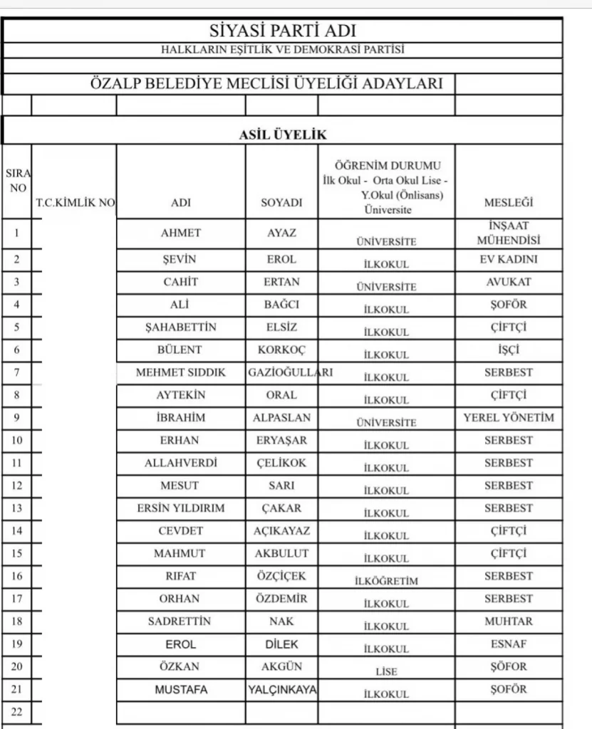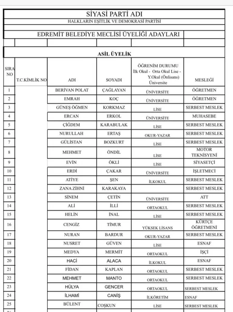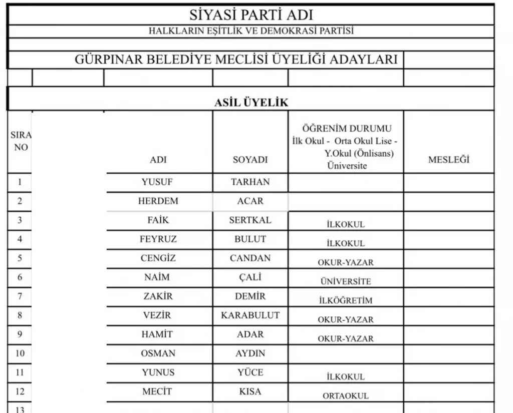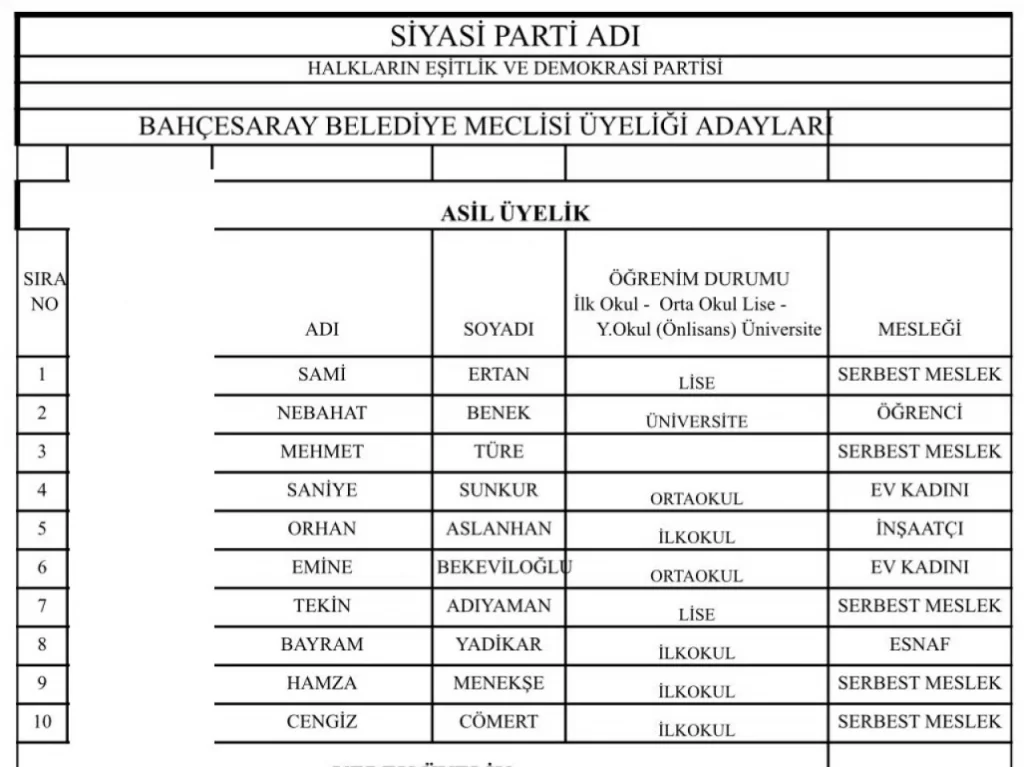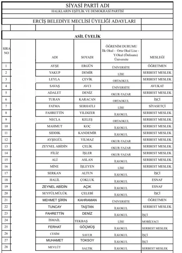 DEM Parti Van’ın merkez ilçelerinde encümen adayları olarak YSK’ya verdiği listeleri belli oldu. DEM Parti Van meclis üyeleri ile tüm ilçe belediye encümen adayları belli oldu.