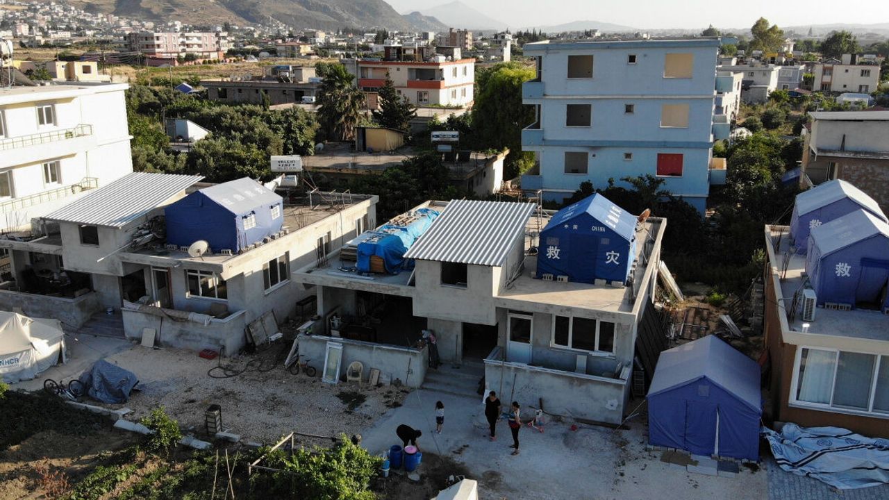 Kahramanmaraş merkezli depremler de en büyük yıkım Hatay'da meydana geldi. Depremin derin yaralar açtığı Antakya ilçesinde vatandaşların deprem korkusu hala devam ediyor. Güzelburç Mahallesinde yaşayan Şabanoğlu ailesi de deprem korkusu nedeniyle evde uyumaya cesaret edemeyince çözümü ilginç bir şekilde buldu. Aile, yan yana bulunan 3 evin üzerine de kurdukları çadırda uyuyorlar. Görenlerin dikkatini çeken dam üstündeki çadırlar, dikkat çekiyor.