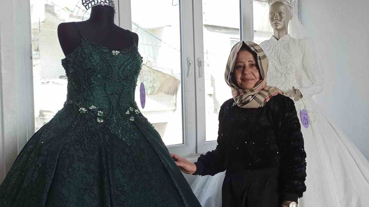 Kahramanmaraş’ta 3 çocuk annesi kadın, mikrokredi desteği ile evinin çatısında kurduğu iş yerinde gelinlik ve abiye satışı yaparak geçimini sağlıyor.
