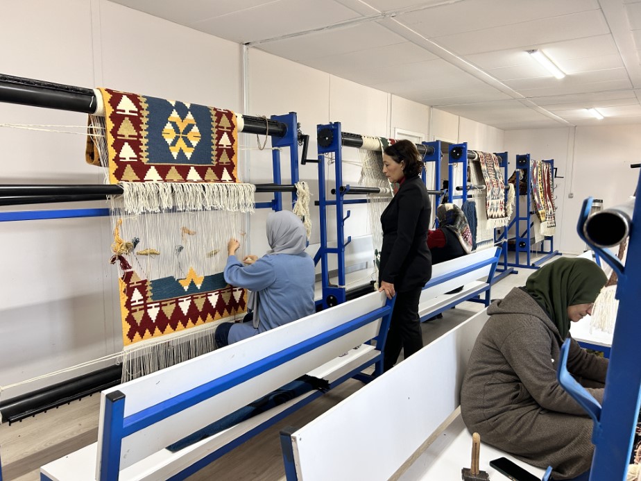 Payas Emekçi Kadınlar Kadın Girişimi Üretim ve İşletme Kooperatifi Yönetim Kurulu Başkanı Aysel Erdem, 8 tezgahta 16 kadının ilmik ilmik kilim döşediğini belirterek “Payas Emekçi Kadınlar Kooperatifi olarak atölyemizde şu anda sekiz tane tezgahımız var, her tezgahta iki kadınımız çalışmakta. Kadın istihdamına önem veriyoruz. Şu anda kök boyalı hakiki yün ve el dokuması olarak ürettiğimiz ürünleri emekçi kadınlar olarak Anadolu motiflerini gün yüzüne çıkararak ürettiğimiz kilimleri Japonya’ya yolluyoruz” ifadelerini kullandı