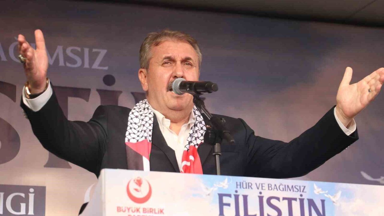 Destici, 100 yıl önce Lawrence’nin söylediklerini günümüzde bazı siyasi parti genel başkanlarının söylediğini belirterek, “Bu bizim davamız değil, Arapların davasıdır diyenler var. Yahu sen Müslüman değil misin, sen insan değil misin? Müslüman Müslüman’ın kardeşi değil mi? Bu sözleri 100 yıl önce Lawrence söylüyordu. Diyordu ki Araplara ‘Osmanlı sizin kardeşiniz değil, sizin Osmanlı diye bir davanız yoktur’ diyordu. Bugün 100 yıl önce Lawrence’nın söylediklerini maalesef bugün benim memleketimde siyasi parti genel başkanı sıfatı taşıyanlar söylüyor. Onlar ne derse desin biz hep birlikte haykıracağız. Her Müslüman’ın acısı bizim acımızdır. Her çocuğun acısı bizim acımızdır. Her masum kadının acısı bizim acımızdır. Yeryüzündeki tüm Müslümanların acısı bizim acımızdır. Onun için Filistin de bizim davamızdır, Doğu Türkistan da bizim davamızdır, Myanmar da bizim davamızdır, Kafkaslar da, Balkaneli de, Türkmeneli de bizim davamızdır ve böyle devam edecektir” şeklinde konuştu.
